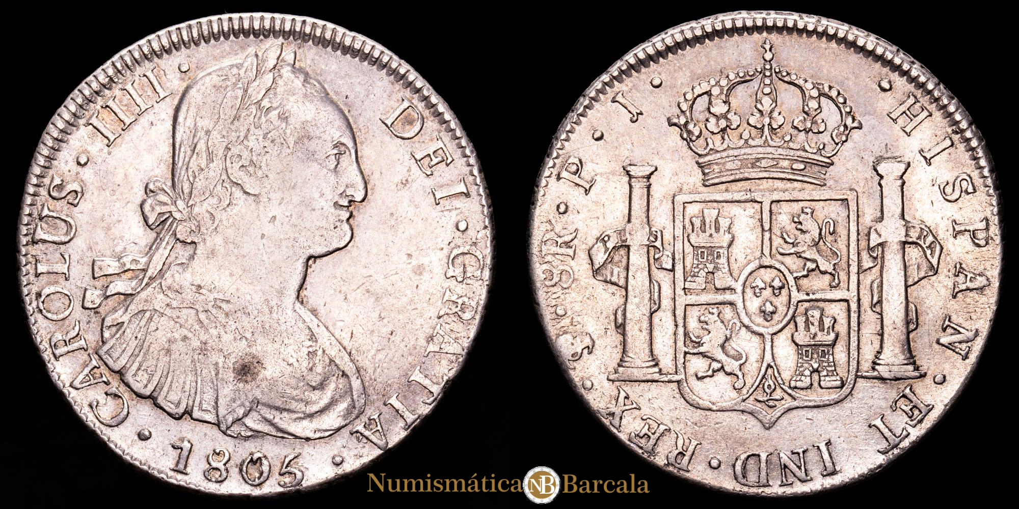 Carlos IV. 8 Reales. (26,98 g.). Potosí (Bolivia). 1805. Ensayador P·J. AC-1010. VF-.