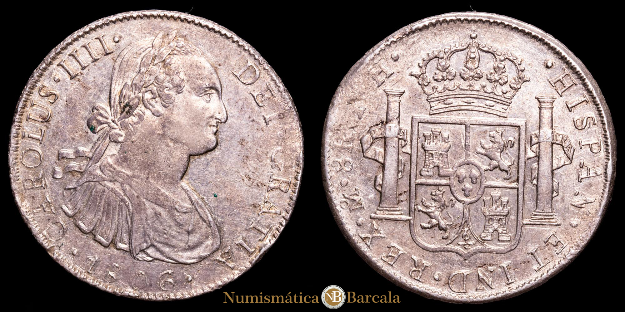 Numismática Barcala > Productos > Monarquia Española > Borbones > 1788-1808 Carlos IV > Carlos IV. 8 Reales. (27,01 g.). México. 1806. Ensayador T·H. AC-984. EBC-. Restos de brillo original.