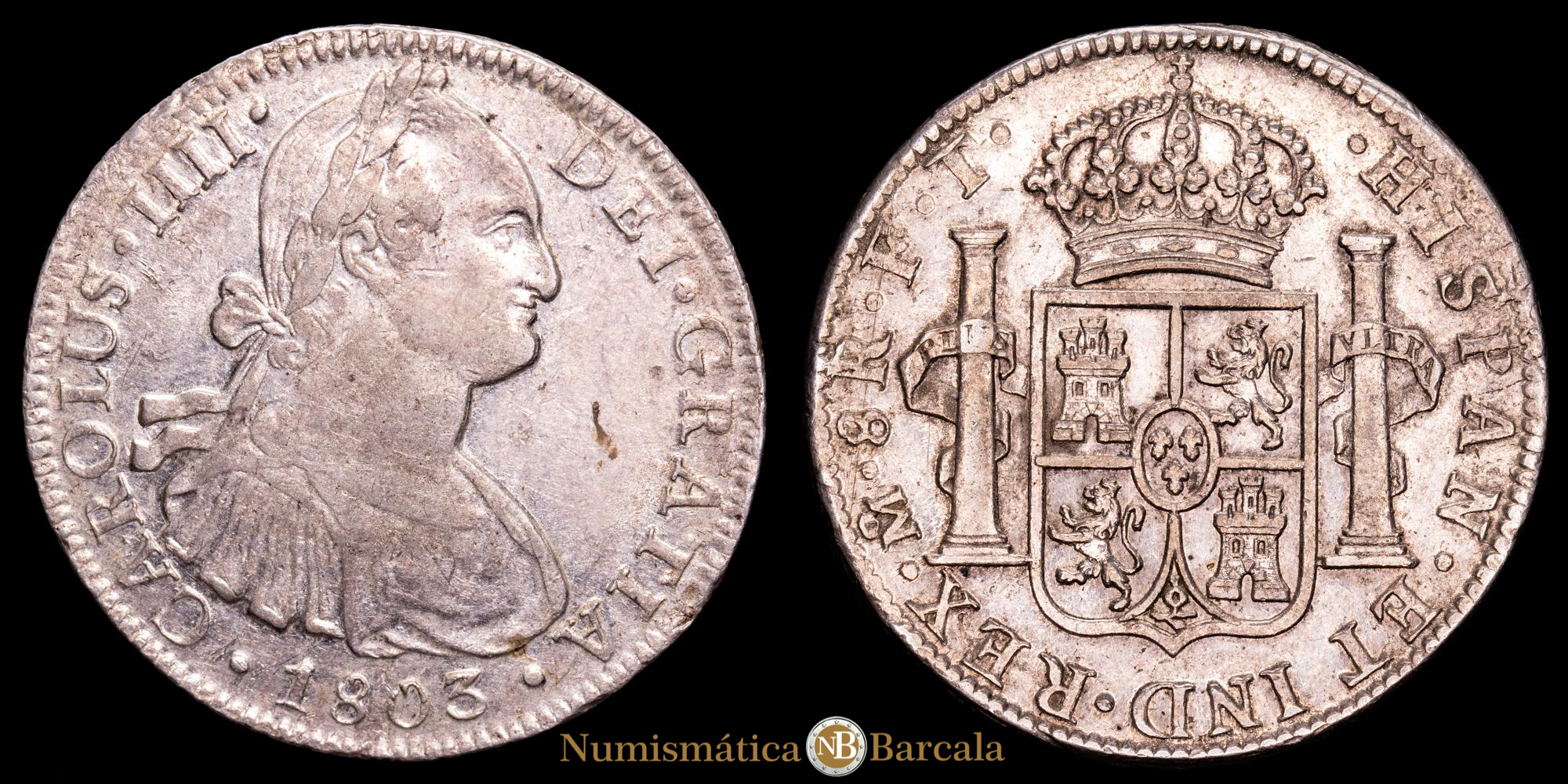 Numismática Barcala > Productos > Monarquia Española > Borbones > 1788-1808 Carlos IV > Carlos IV. 8 Reales. (27,03 g.). México. 1803. Ensayador F·T. AC-977. EBC. Brillo original.