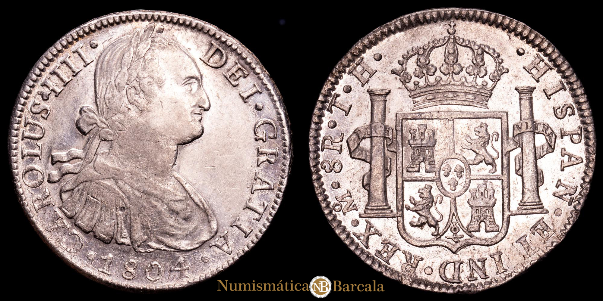 Carlos IV. 8 Reales. (27,09 g.). México. 1804. Ensayador T·H. AC-980. EBC/EBC+. Restos de brillo original.
