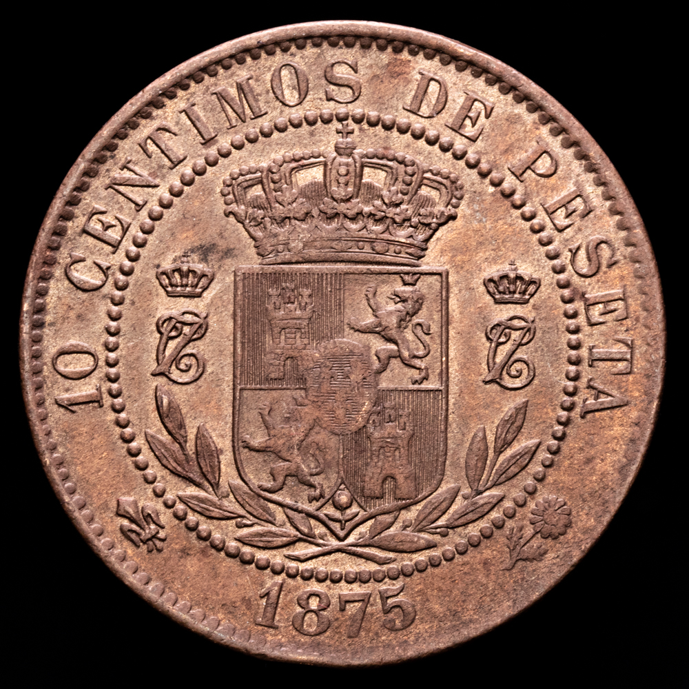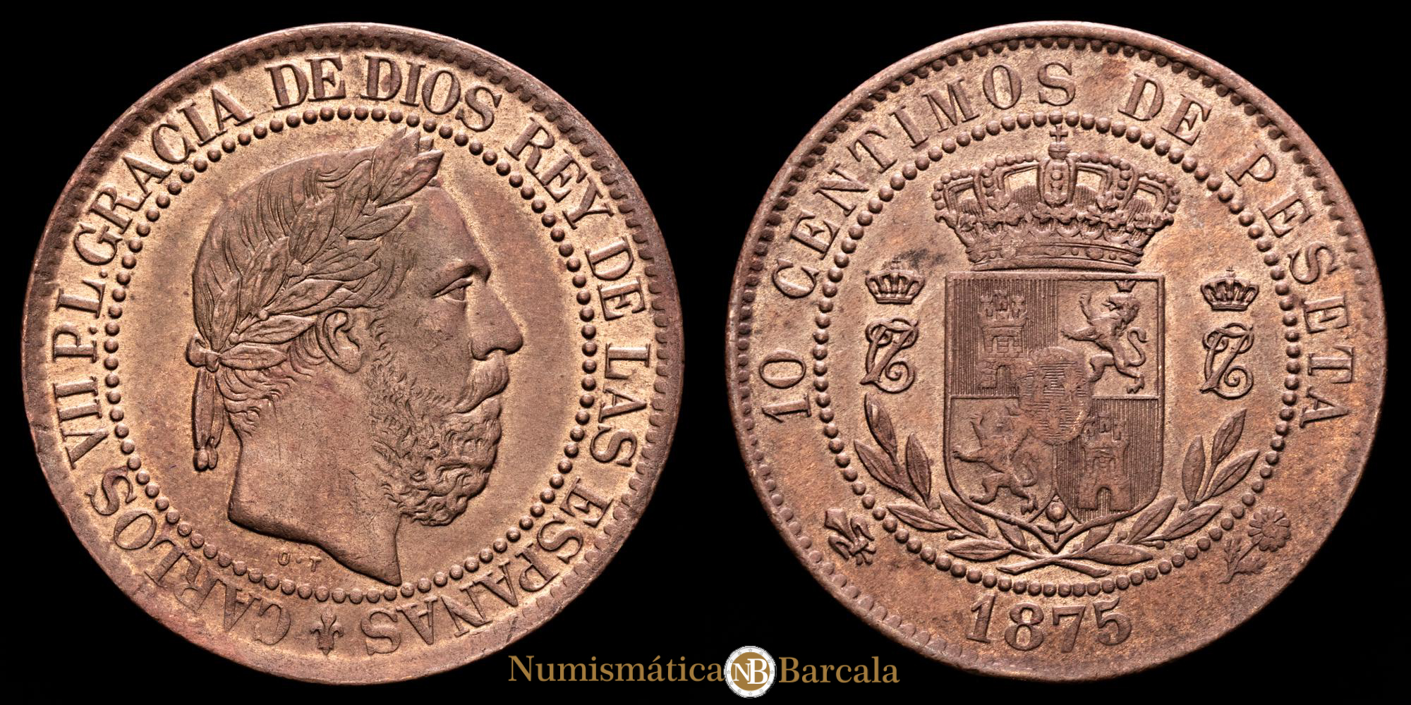 Carlos VII. 10 Céntimos. (9,95g.). Bruselas. 1875. AC-6. EBC.