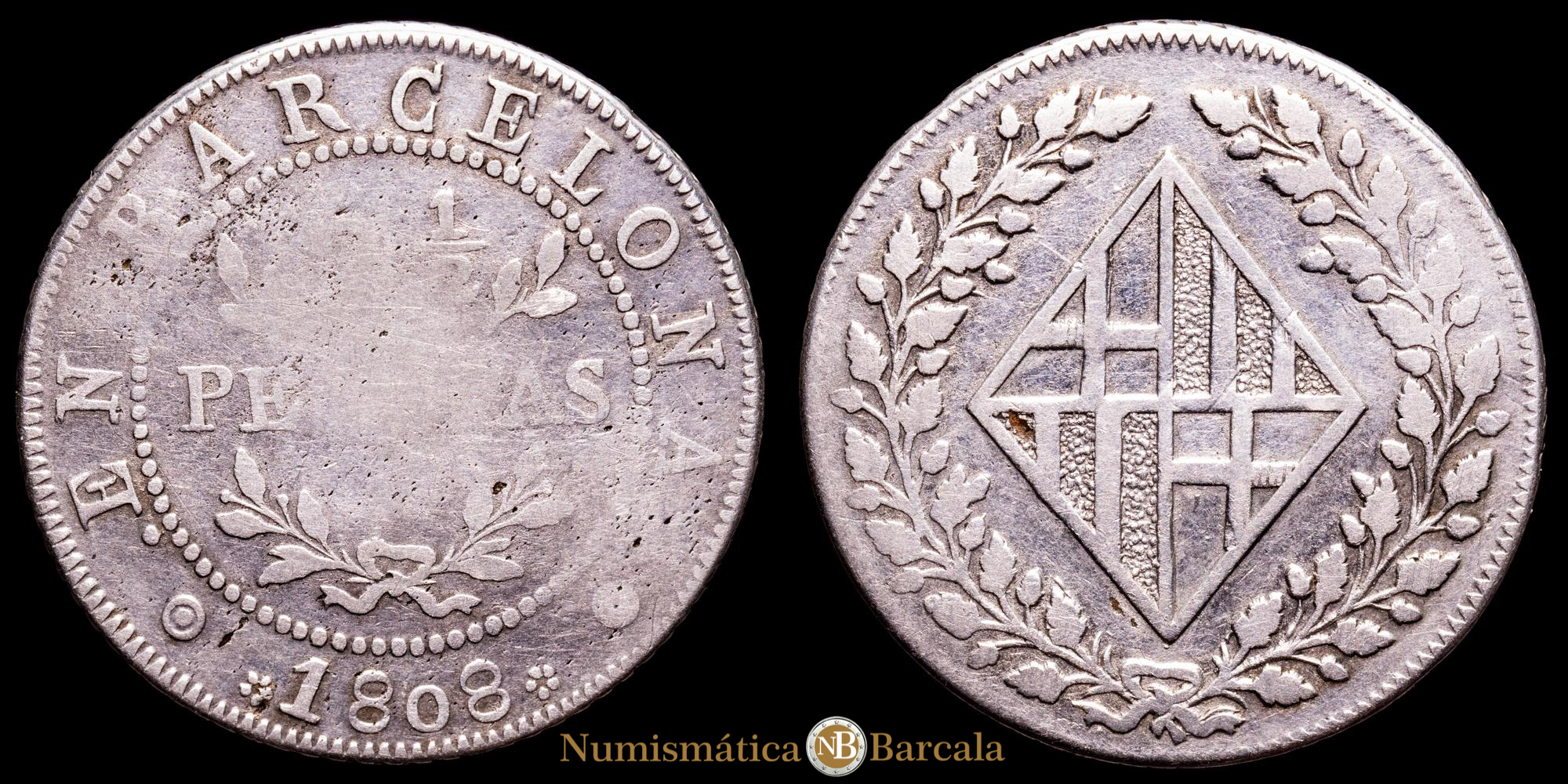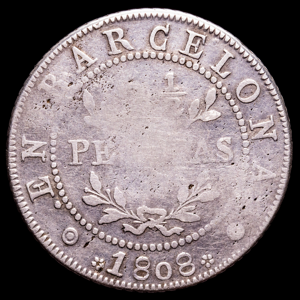 Numismática Barcala > Productos > Monarquia Española > Borbones > 1808-1814 Cataluña Napoleónica > Cataluña Napoleónica. 2 1/2 Pesetas. (13,18 g.). Barcelona. 1808. AC-40. BC+. Escasa.