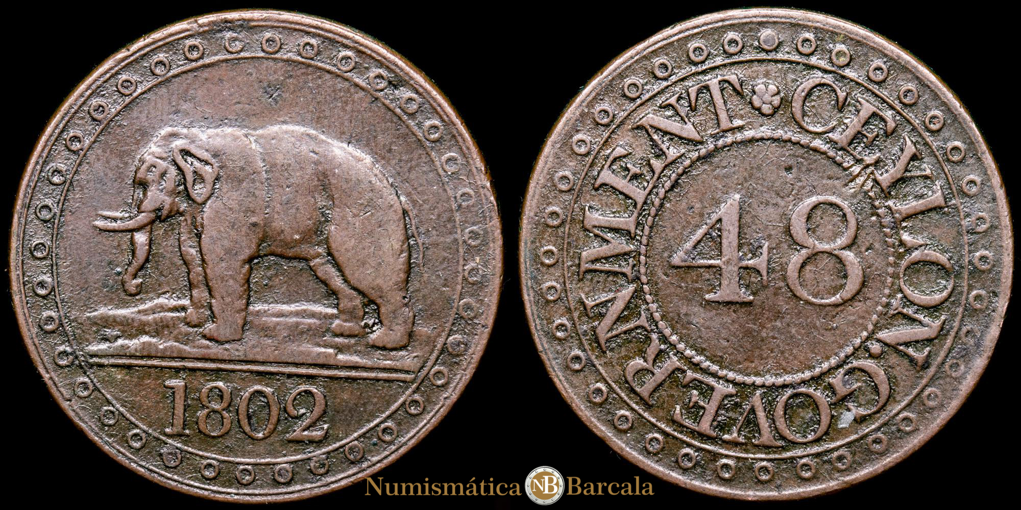 Ceylon. 1/48 Rixdollar. (9,37 g.). 1802. KM-75. VF+. Escasa!