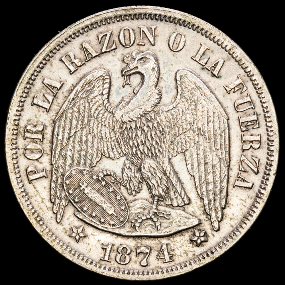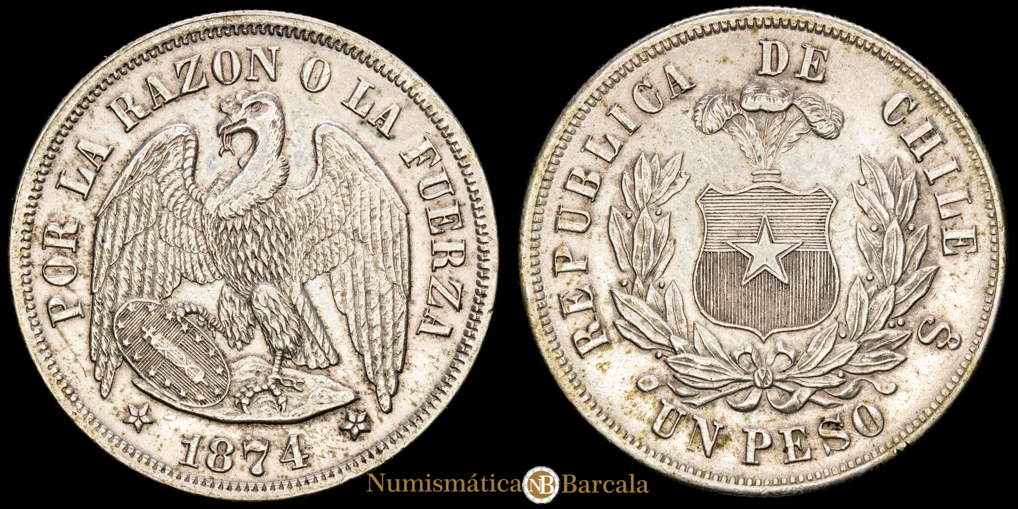 Numismática Barcala > Productos > Monedas Mundiales > America Sur > Chile > Chile. 1 Peso. (24,94g.). Santiago. 1874. KM-142.1. XF.