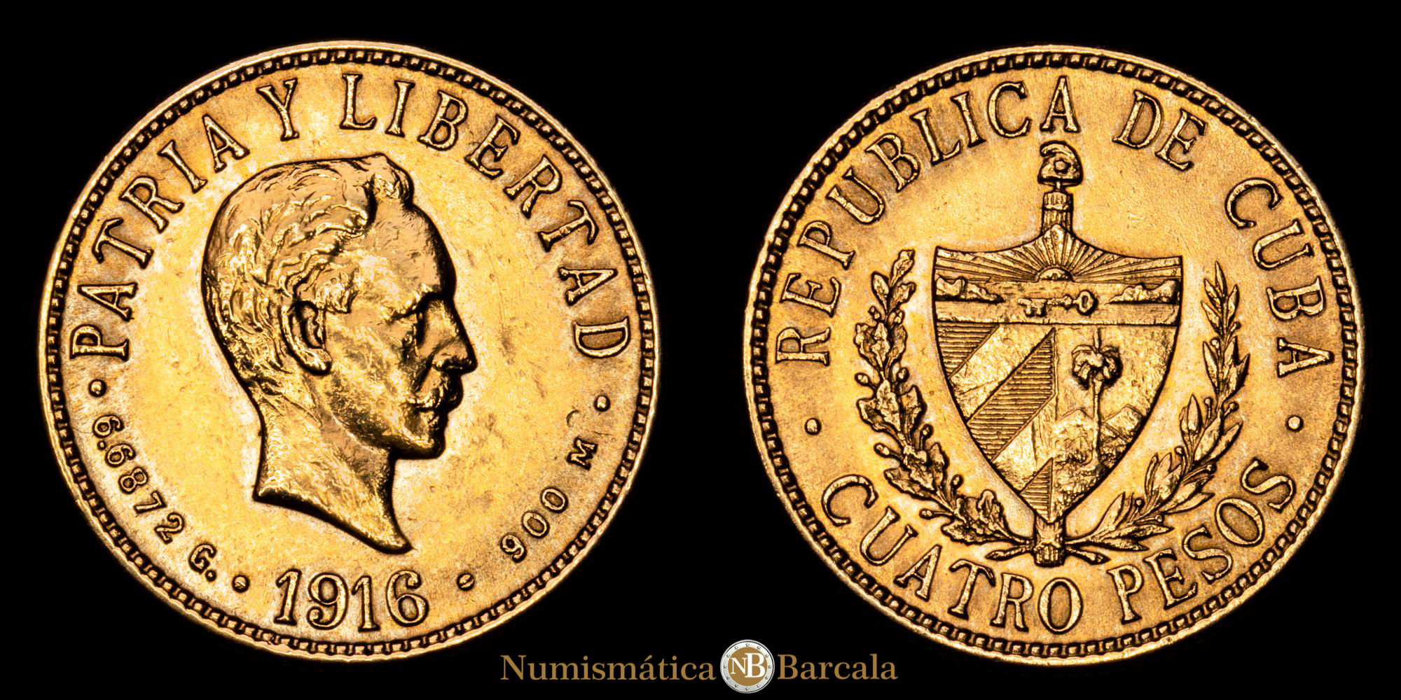 Numismática Barcala > Productos > Monedas Mundiales > America Sur > Cuba > Cuba. 4 Pesos. (6,7 g.). 1916. KM-19. EBC. Escasa