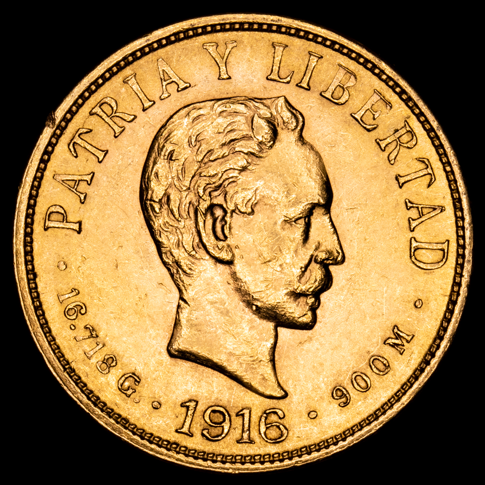 Cuba – José Marti. 5 Pesos. (8,38g.). 1916. KM-19. XF+. Oro (.900)