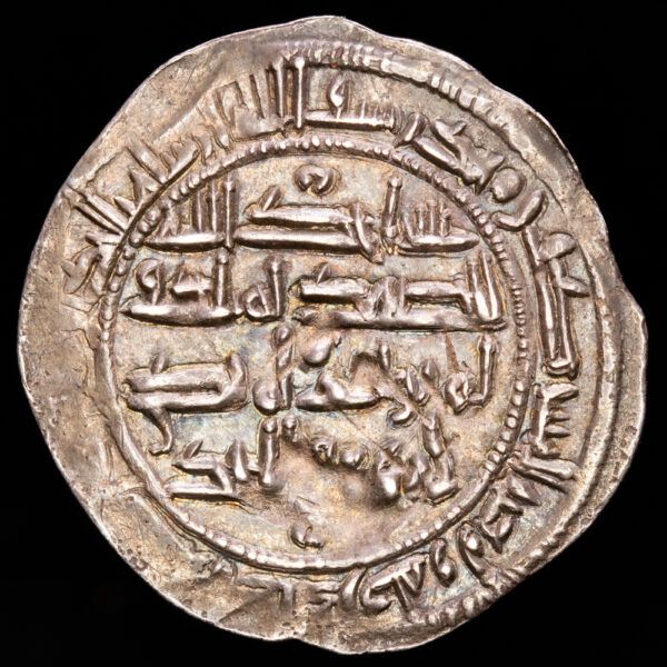 Emirato de Córdoba – abd al-Rahman I. Dirham. ( 2,72g.). al-Ándalus. 165 H (781 d.C.). Vives 63. XF. Preciosa tonalidad. Escasa.