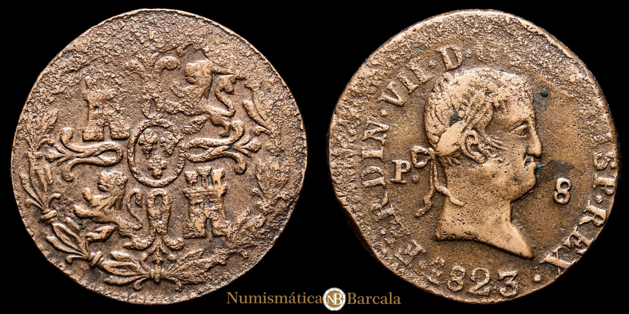 España. 8 maravedís. Pamplona. 1823. Rara.