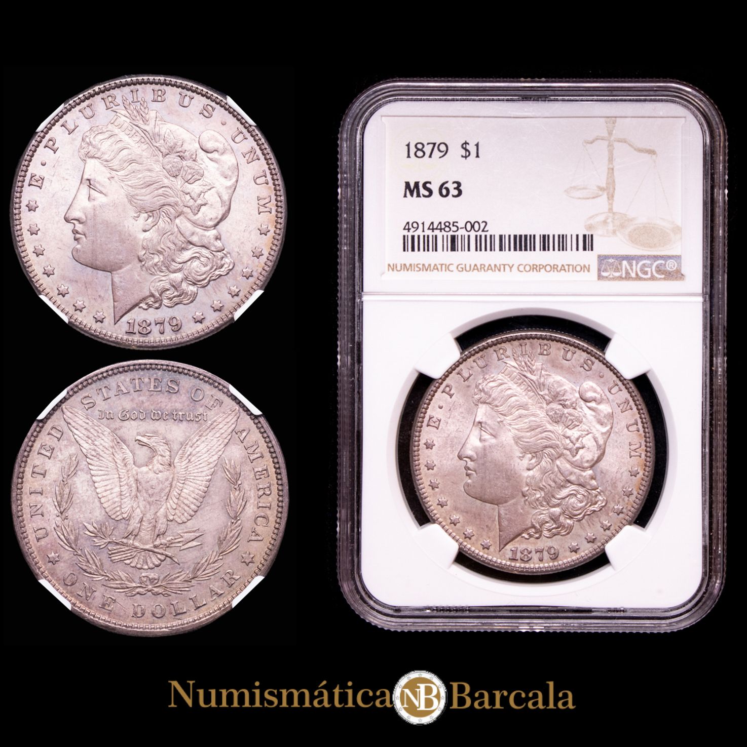 Numismática Barcala > Productos > Monedas Mundiales > America Norte > Estados Unidos > Estados Unidos. 1 dólar (26,56 g.). Filadelfia, 1879. Kr. 110. Encapsulada por la NGC MS63.