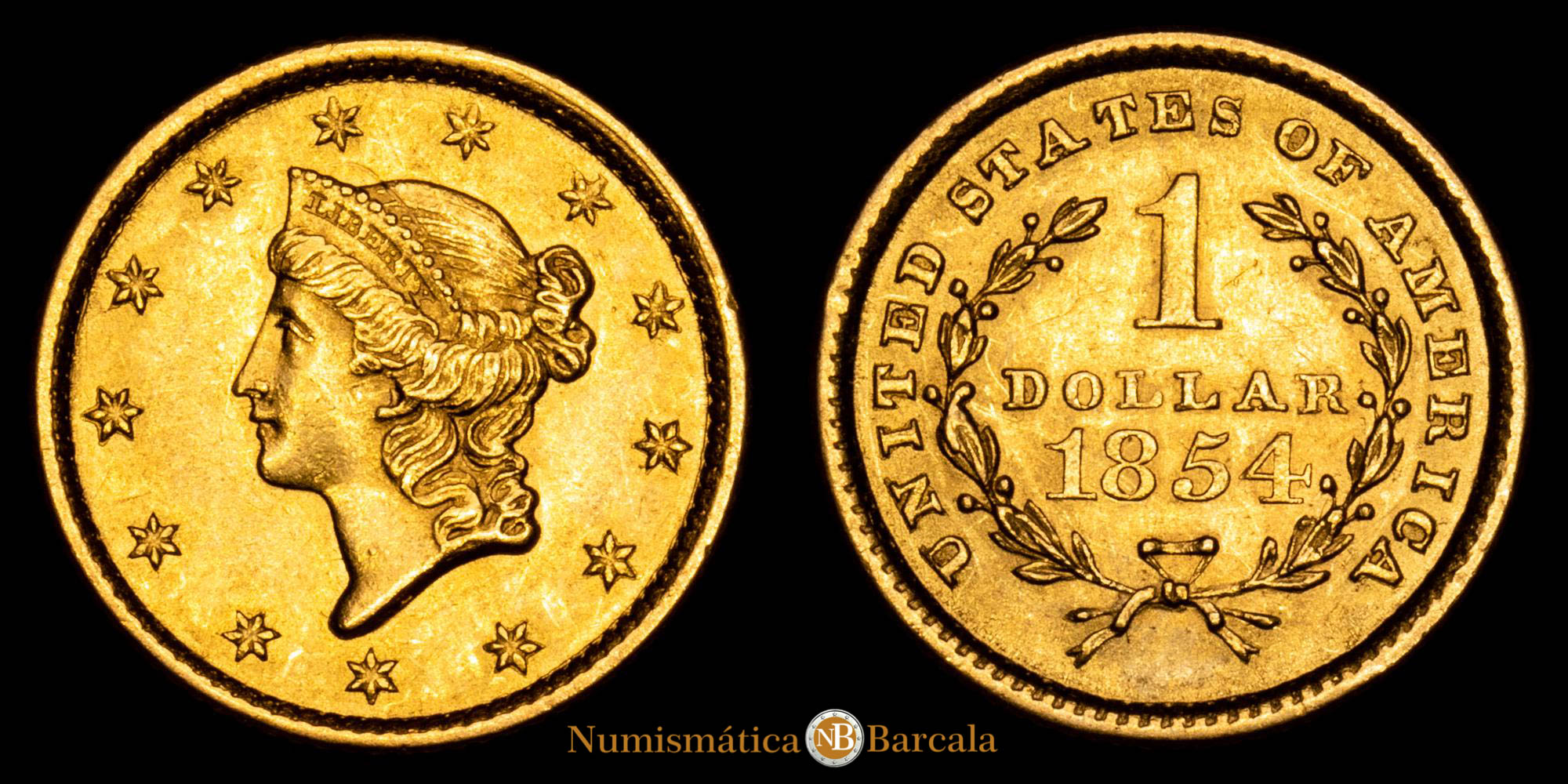 Numismática Barcala > Productos > Monedas Mundiales > America Norte > Estados Unidos > Estados Unidos. 1 Dollar. (1,67 g.). Filadelfia. 1854. KM-73. EBC.