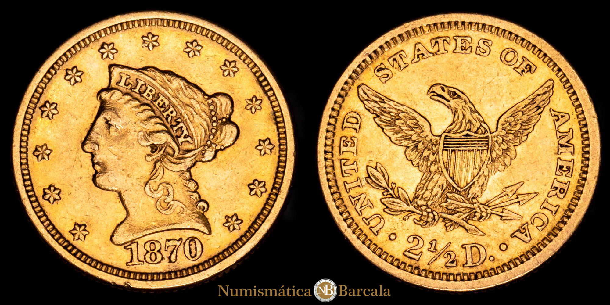 Estados Unidos. 2 1/2 Dolar. (4,17 g.). 1870. XF. Restos de brillo original. Acuñación 4520 unidades.