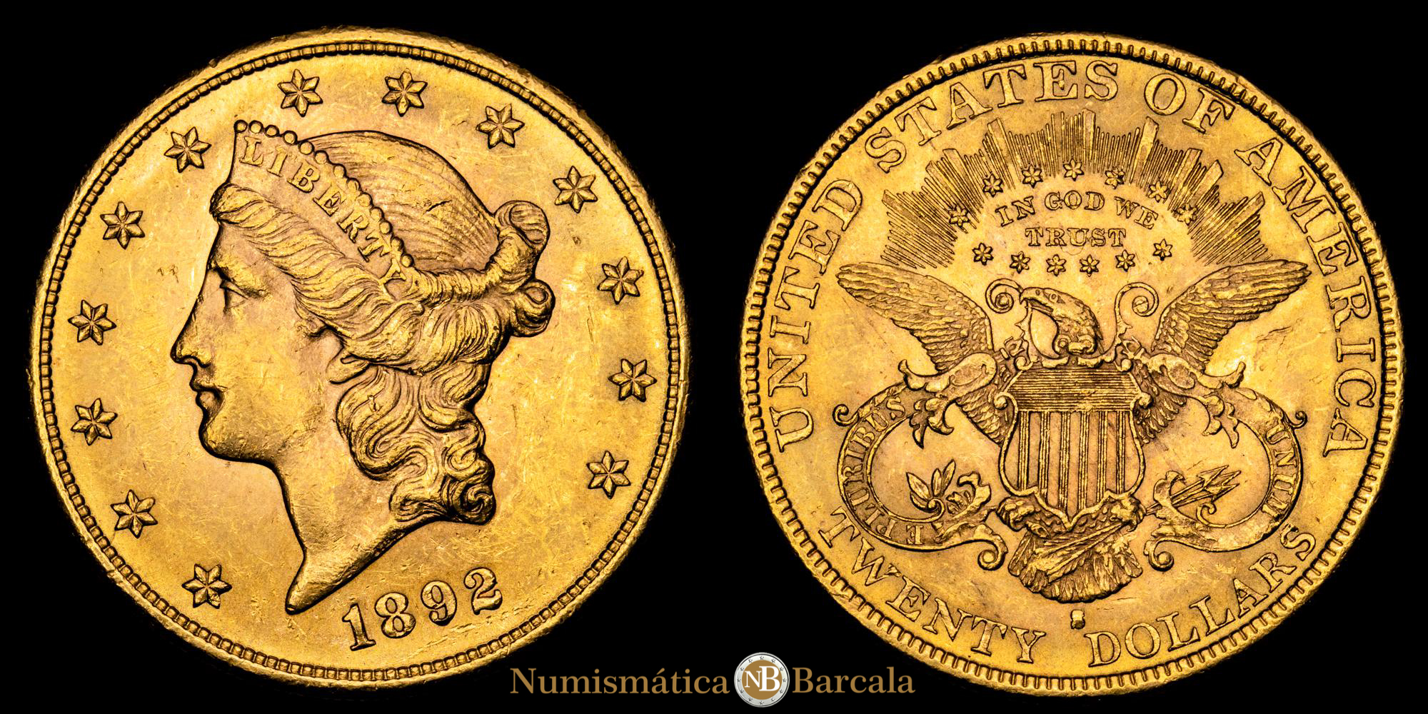 Numismática Barcala > Productos > Monedas Mundiales > America Norte > Estados Unidos > Estados Unidos 20 dólares 1892 S . Oro (.900) 33,45 g.; “Liberty Head – Double Eagle” : San Francisco; UNC-
