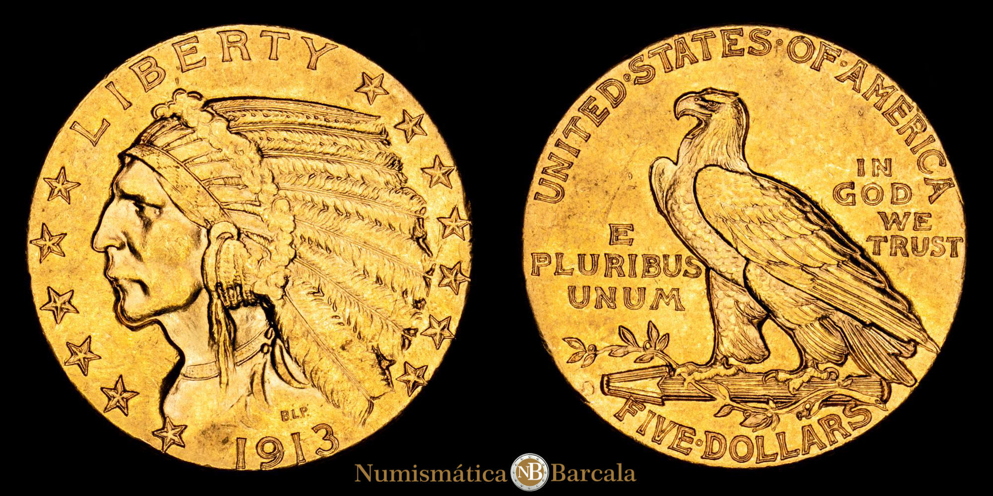 Numismática Barcala > Productos > Monedas Mundiales > America Norte > Estados Unidos > Estados Unidos. 5 Dollar. (8,39 g.). San Francisco. 1913. KM-129. XF+. Restos de brillo original.
