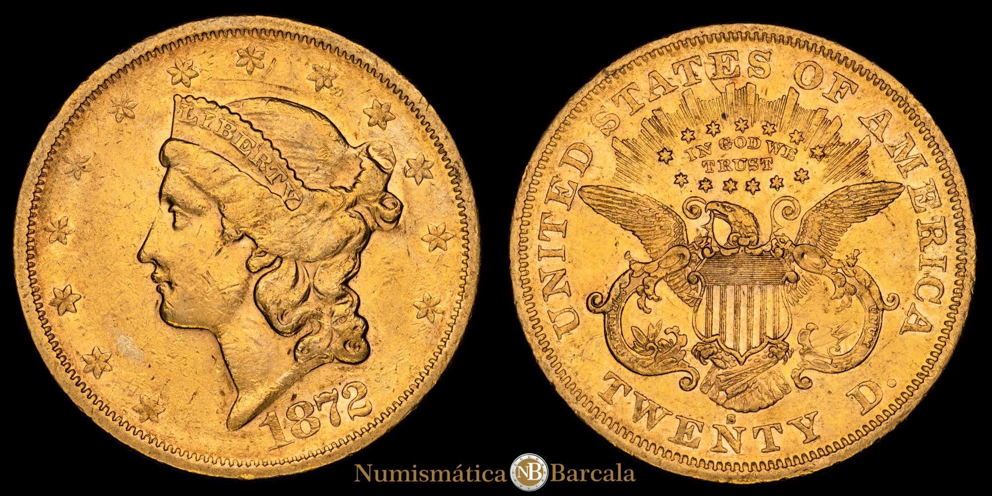 Estados Unidos de América. 20 Dollars. (33,46 g.). San Francisco. 1872. KM-74.2. VF+.