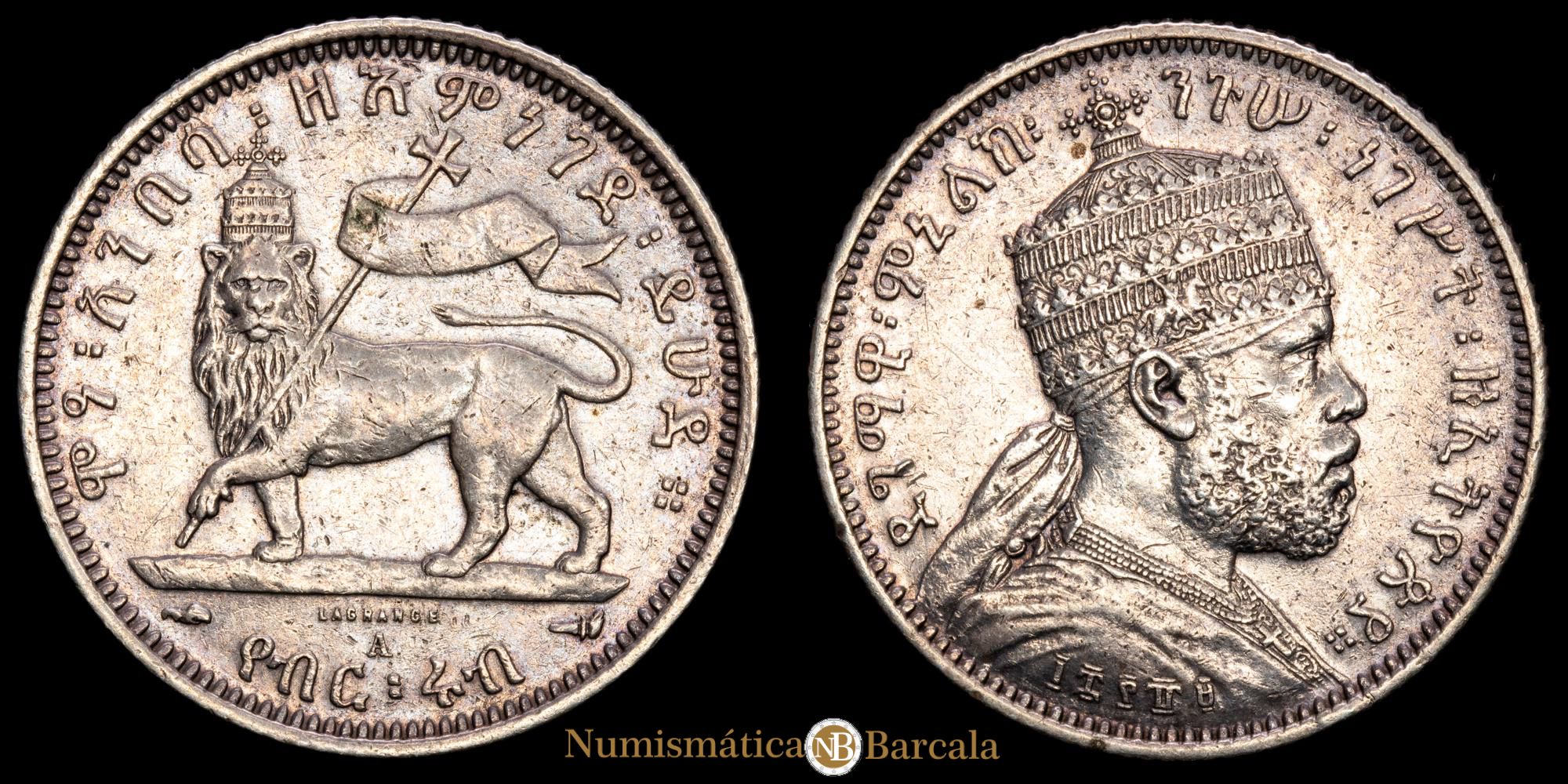 Numismática Barcala > Productos > Monedas Mundiales > África > Etiopía > Ethiopia – Menelik II. 1/4 Birr (7,04 g.). 1889-A. KM-3. XF+.