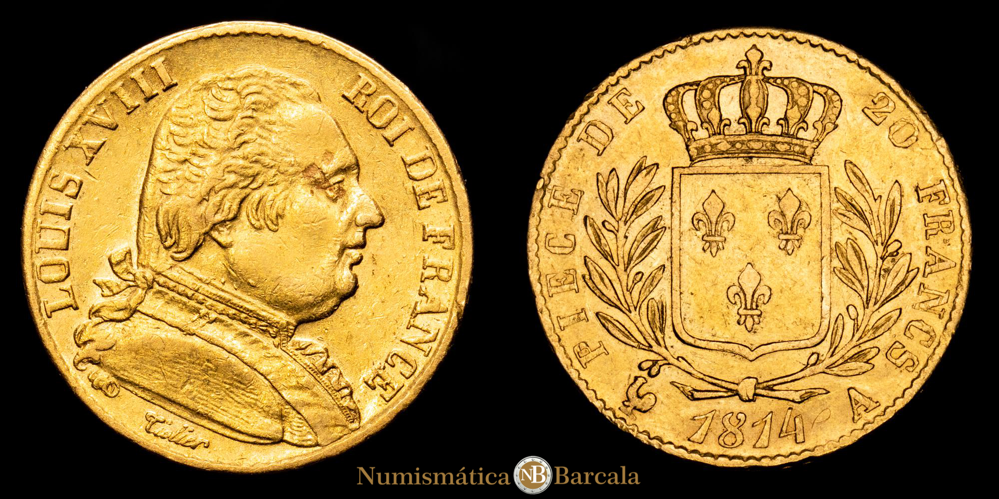 Numismática Barcala > Productos > Monedas Mundiales > Europa > Francia > Farncia – Luis XVIII. 20 Francs. (6,43 g.). París-A. 1814. PR-525. EBC-.