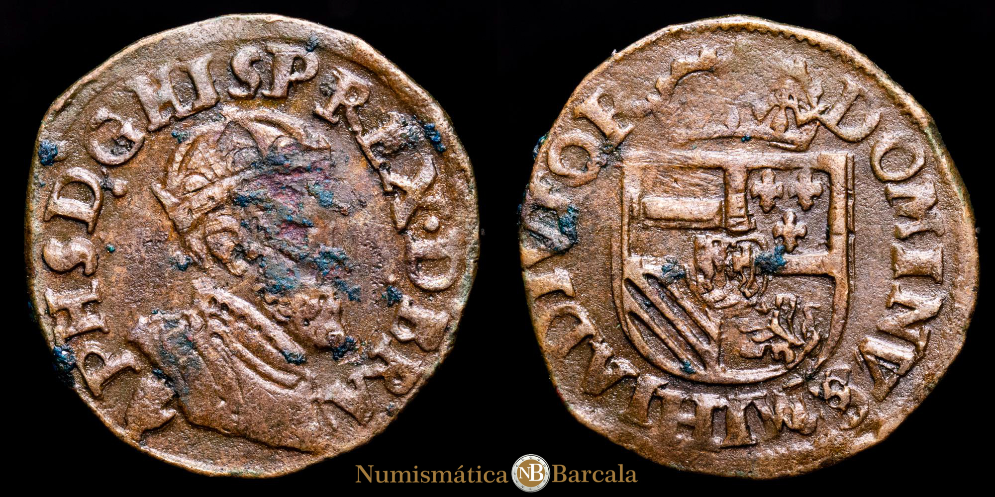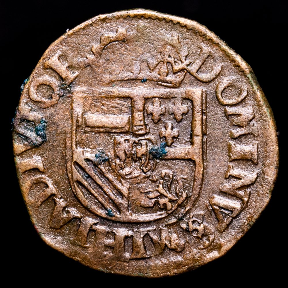 Numismática Barcala > Productos > Monarquia Española > Austrias > 1556-1598 Felipe II > Felipe II. 1/6 Liard. (1,8 g.). Amberes. (1556-1698). W-756. MBC+. Rara