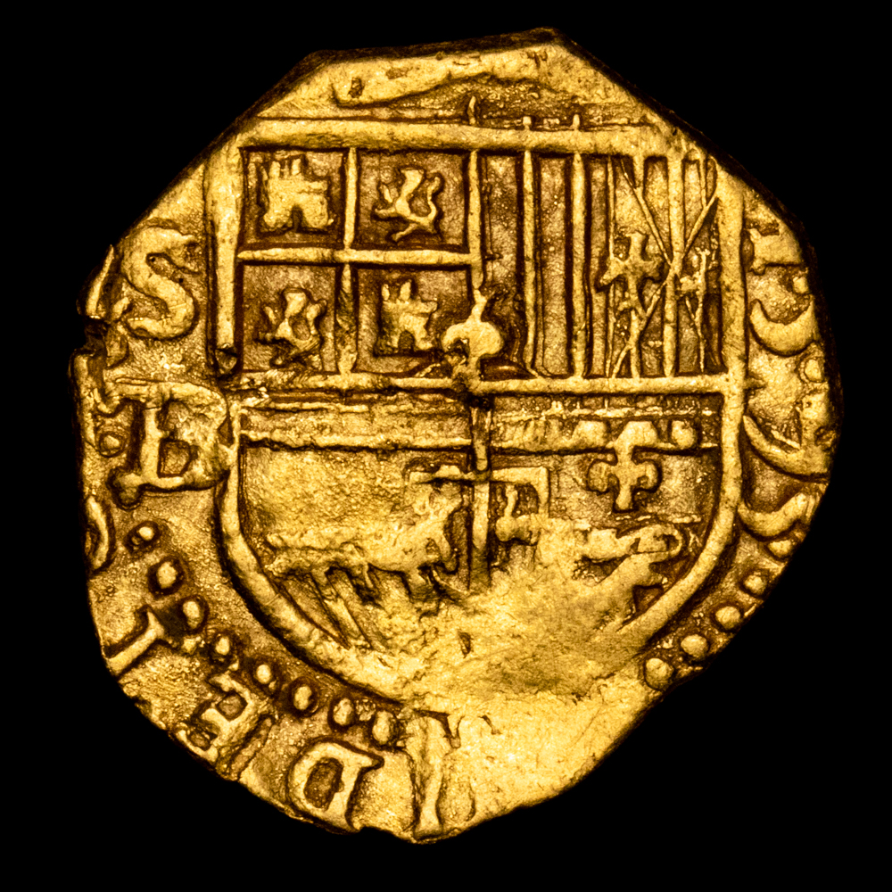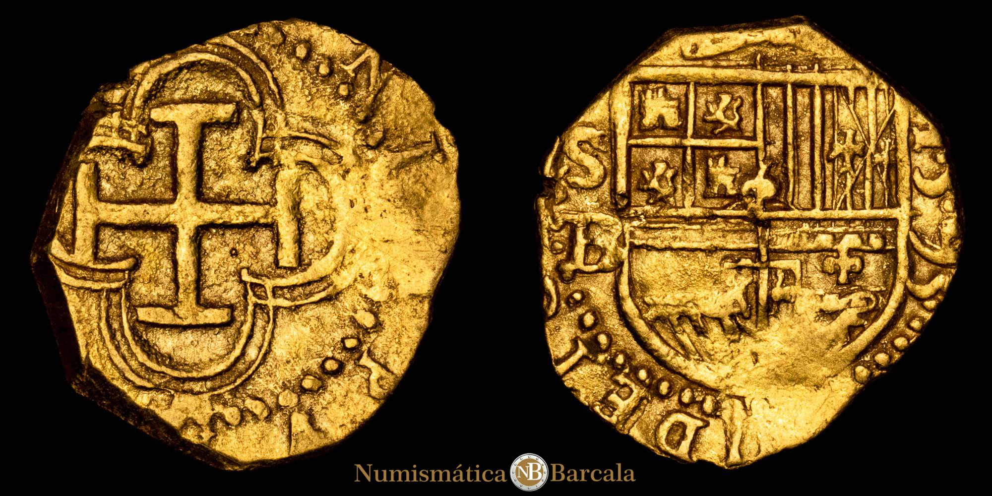 Numismática Barcala > Productos > Monarquia Española > Austrias > 1556-1598 Felipe II > Felipe II. 1 Escudo. (3,35 g.). Sevilla. 1595. Ensayador B. Aureo y Calicó-794. EBC-. Sin roeles ni flores en reverso. Muy rara.