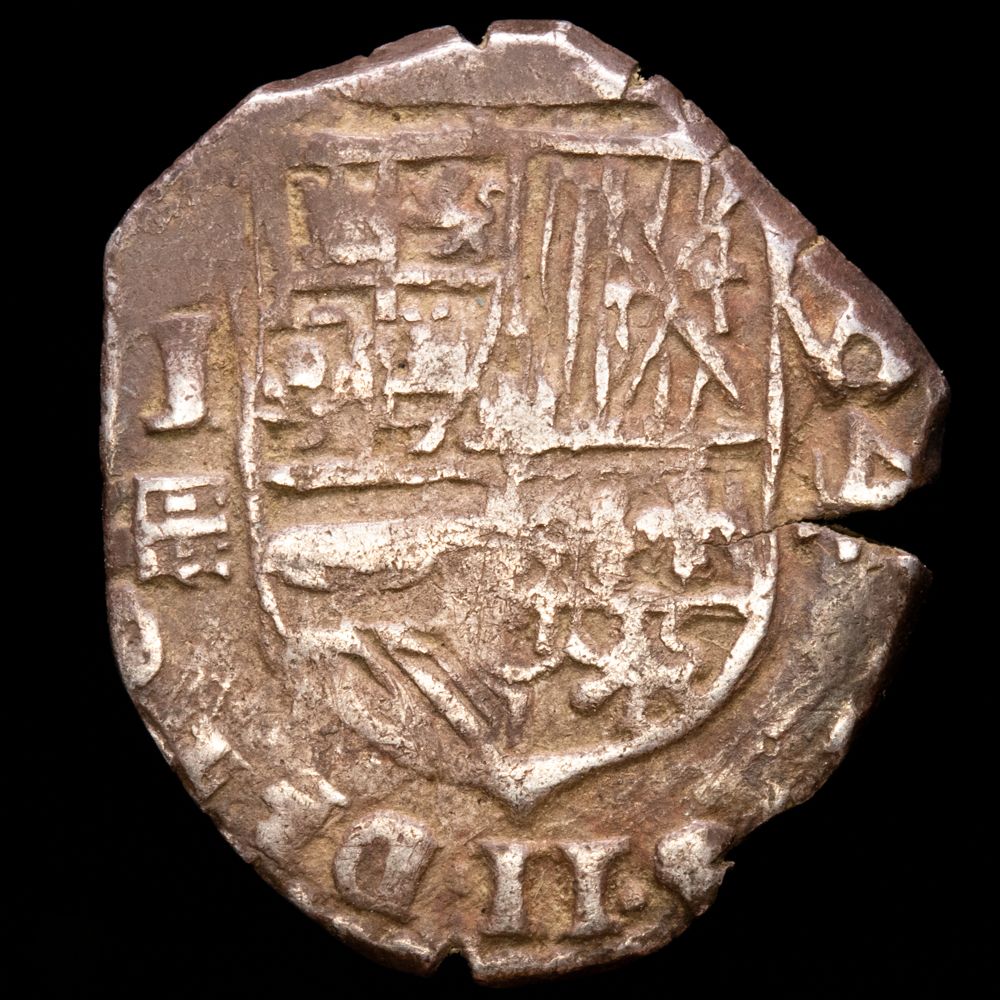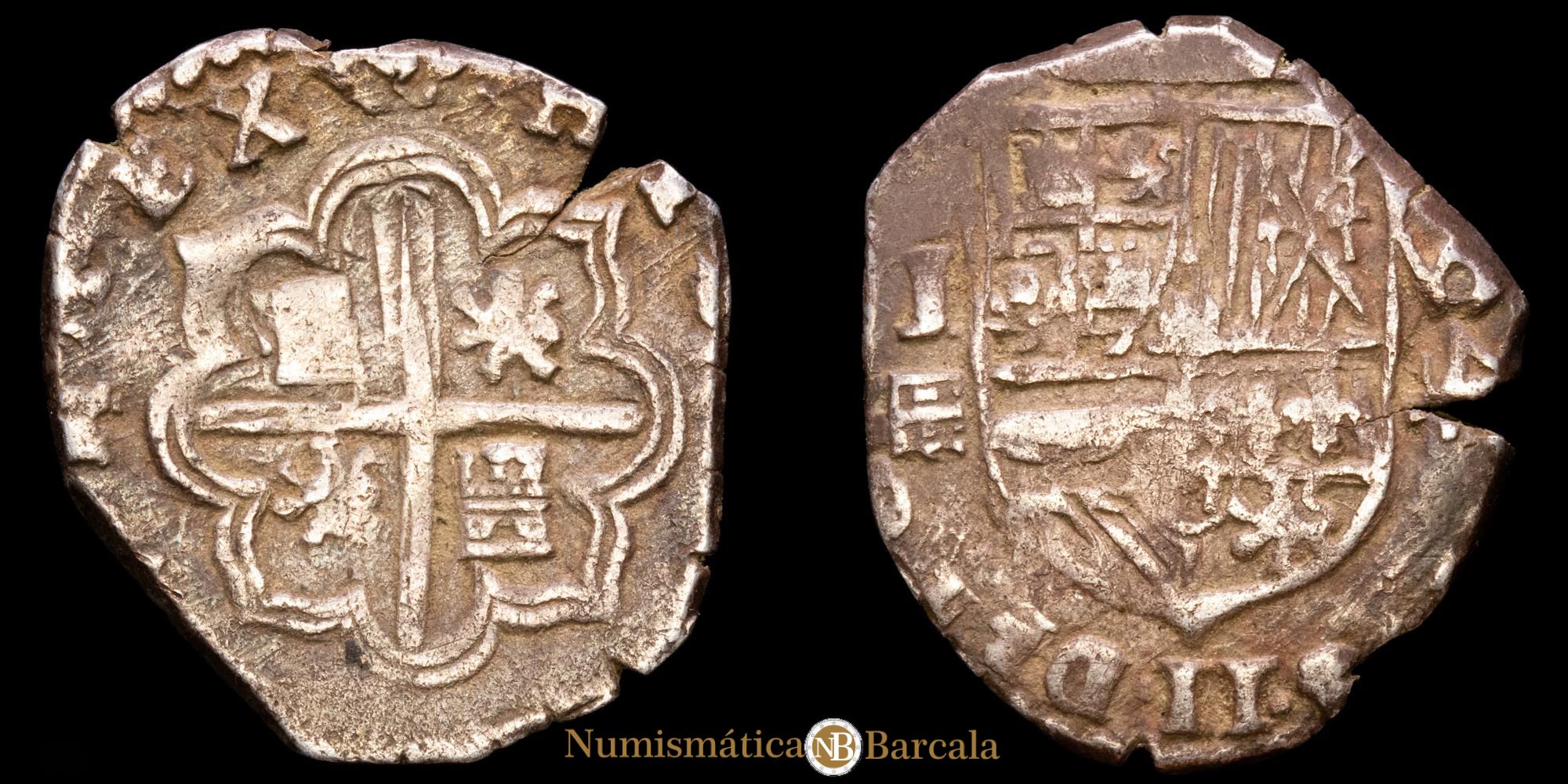 Felipe II. 4 Reales. (13,66 g.). Sevilla. 1595. Ensayador B. AC-NO CITA. MBC+. Inédita, bajo el castillo del 4º cuartel una I