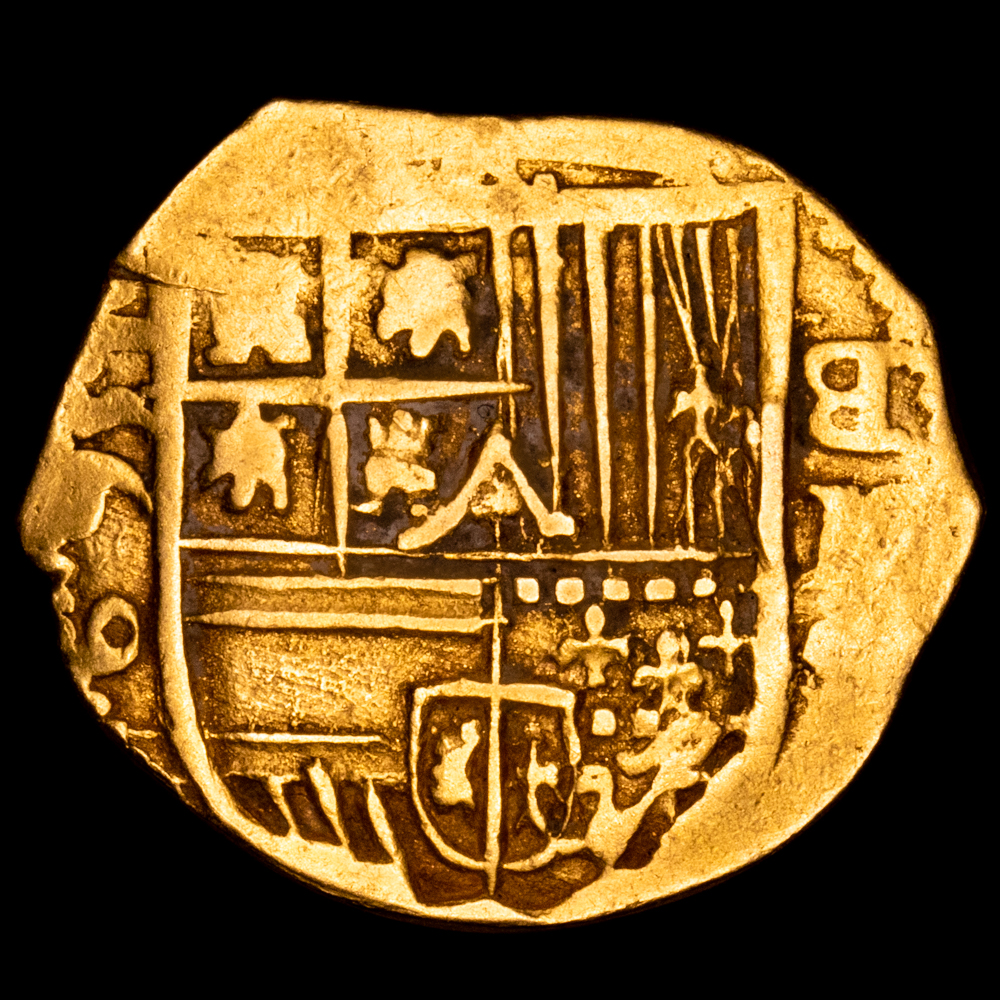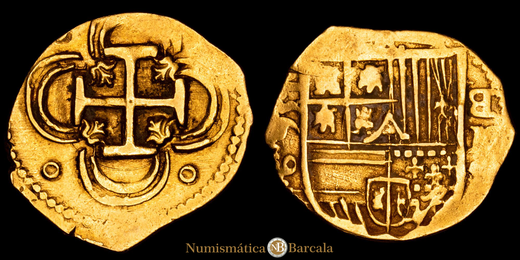 Numismática Barcala > Productos > Monarquia Española > Austrias > 1556-1598 Felipe II > Felipe II. 2 Escudos. (5,75 g.). Sevilla. 1596. Ensayador B. AC-Falta. MBC+. Muy rara. Fecha en espejo