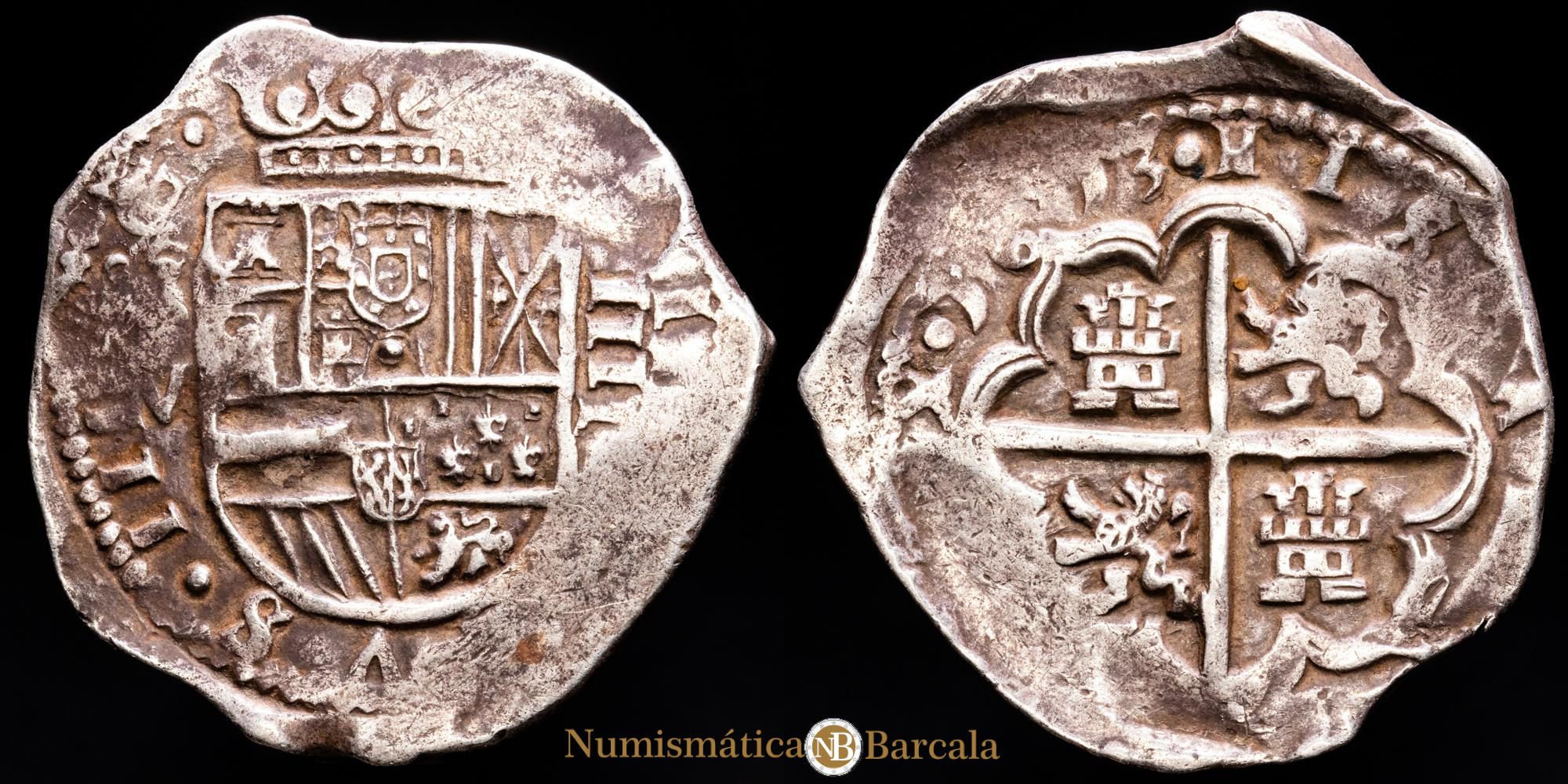 Numismática Barcala > Productos > Monarquia Española > Austrias > 1556-1598 Felipe II > Felipe II. 4 Reales. (13,5 g.). Sevilla. 1613. Ensayador V. AC-813. MBC+.