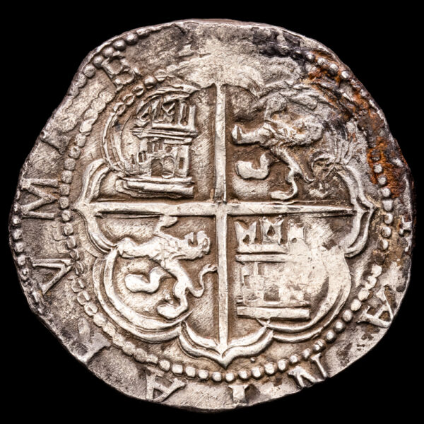 Felipe II. 4 Reales. (13,66 g.). Sevilla. 1595. Ensayador B. AC-NO CITA. MBC+. Inédita, bajo el castillo del 4º cuartel una I