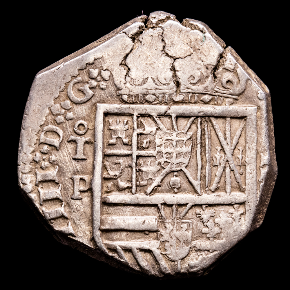 Felipe IV. 8 Reales. (25,25 g.). Potosi. 1634. Ensayador T. AC-1459. BC. Rara. Oxidaciones marinas
