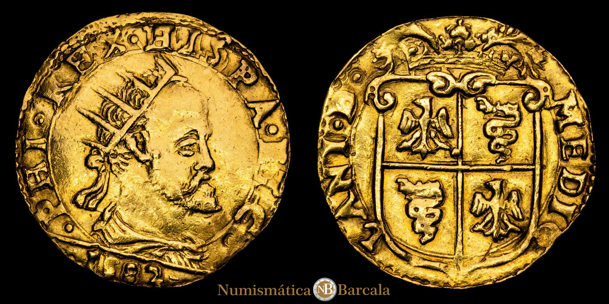 Felipe II. Doppia. (6,45 g.). Milán. 1582. MIR-301/2. MBC+. Rara
