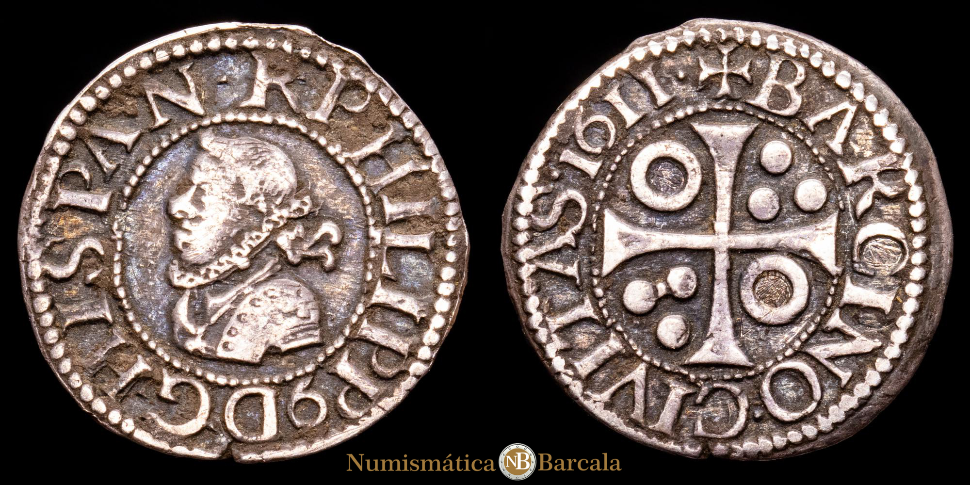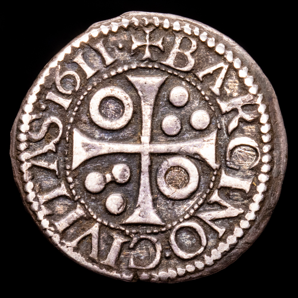 Felipe III. 1/2 Croat. (1,55 g.). Barcelona. 1611. MBC+. Pátina