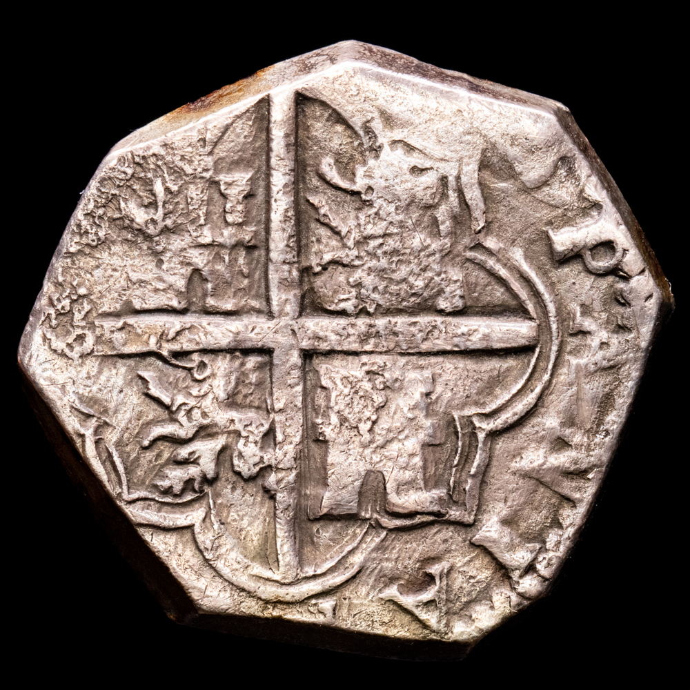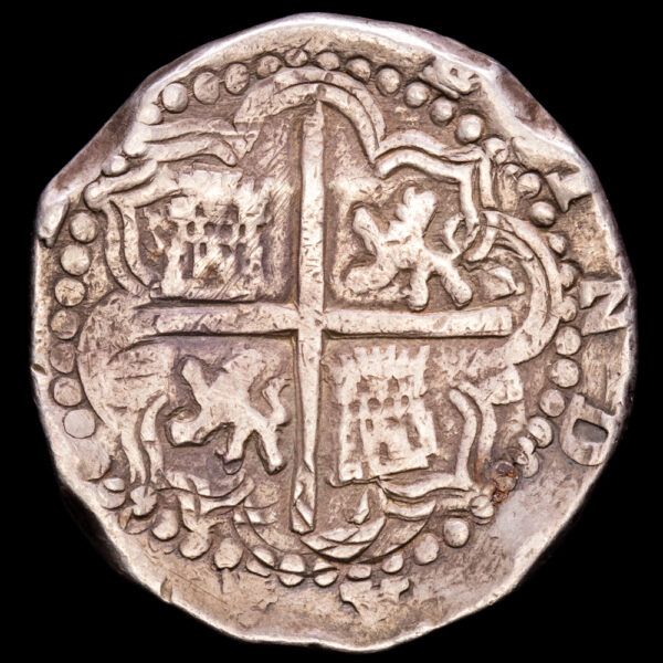 FELIPE III. 8 Reales. 1618. SEGOVIA. Una superada de cruz. 26,84 grs. Cinco flores de lis en escudo. ESCASA. AC 949 . MBC+. Agujero reparado a las 6 H.
