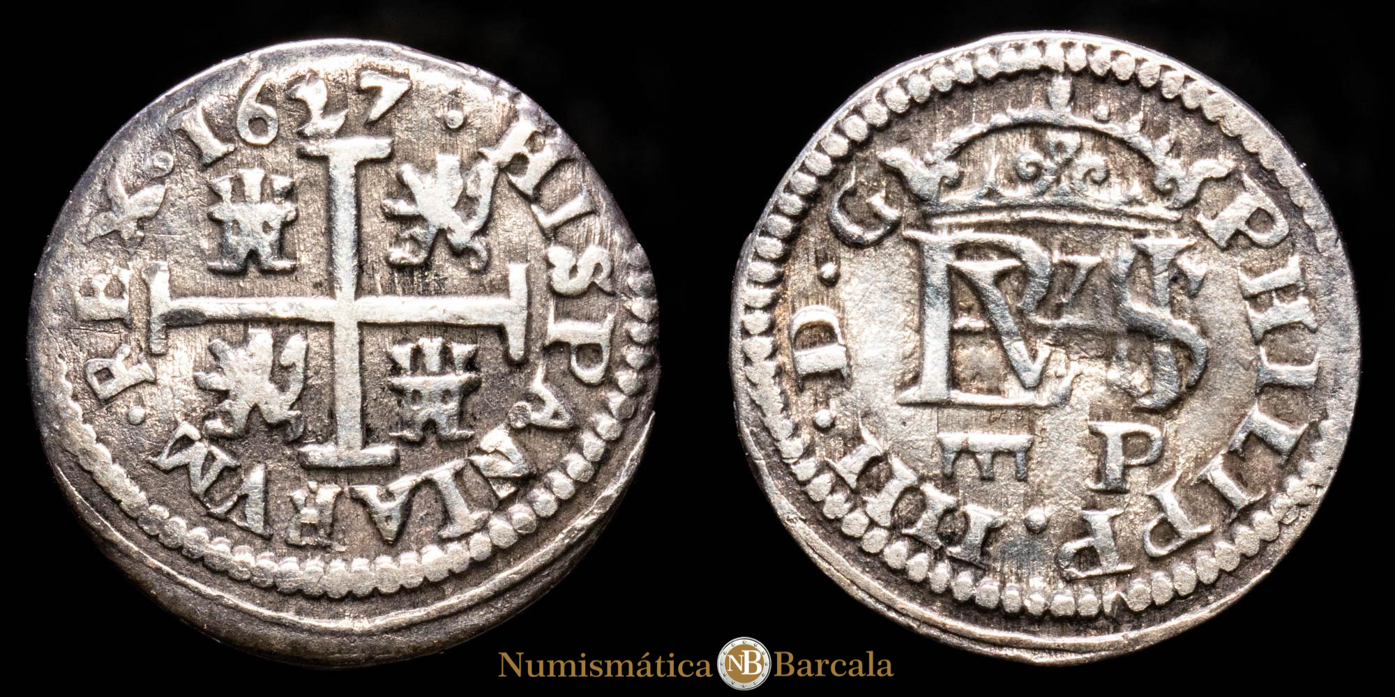 Numismática Barcala > Productos > Monarquia Española > Austrias > 1621-1665 Felipe IV > Felipe IV. 1/2 Real. (1,72 g.). Segovia. 1627. Ensayador P. Aureo y Calicó – 620. MBC+. Acueducto de dos arcos.