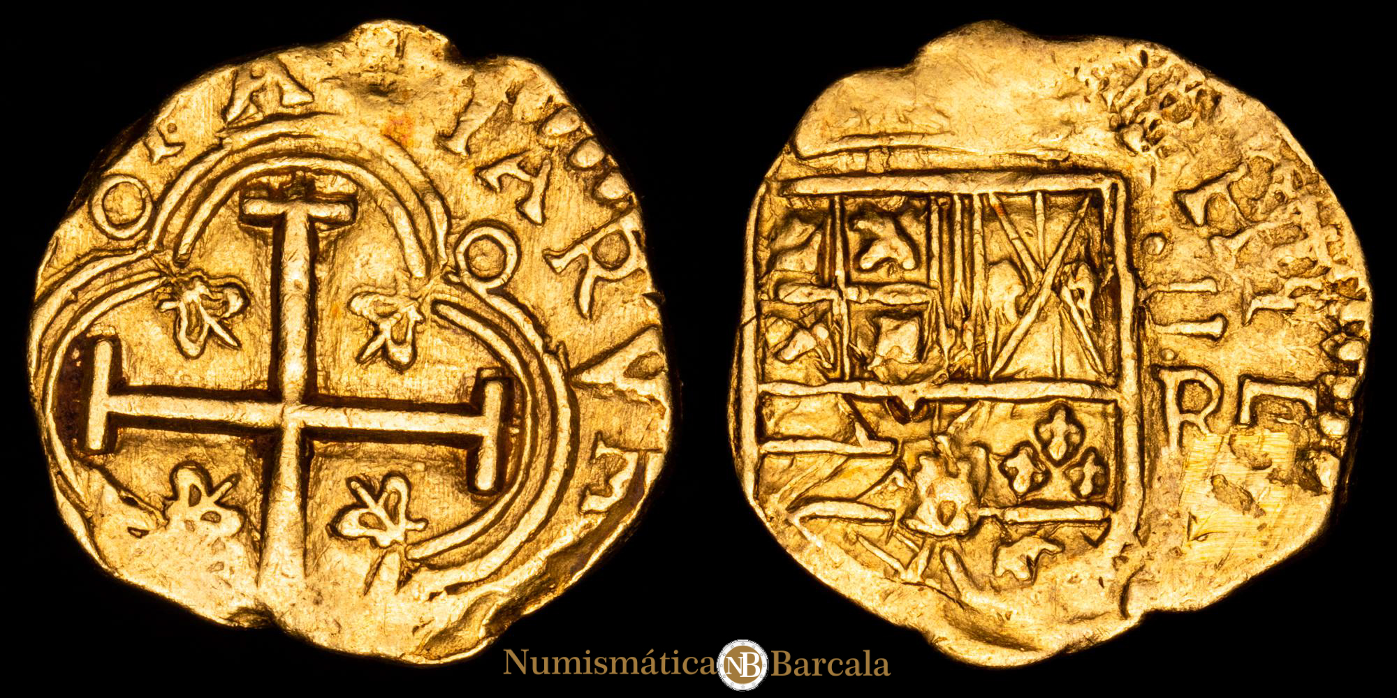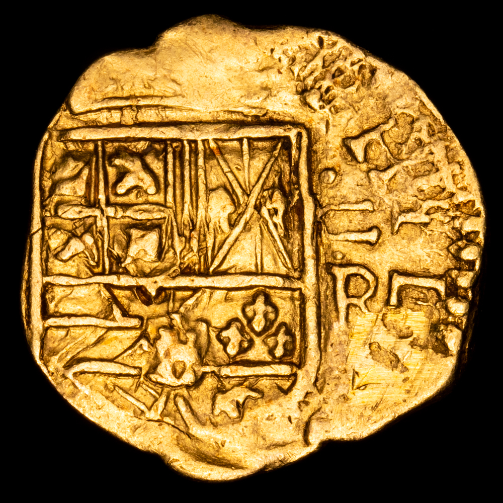 Numismática Barcala > Productos > Monarquia Española > Austrias > 1621-1665 Felipe IV > Felipe IV. 2 Escudos. (6,56 g.). Nuevo Reino. S/F. AC-TIPO386. VF+. Rara.