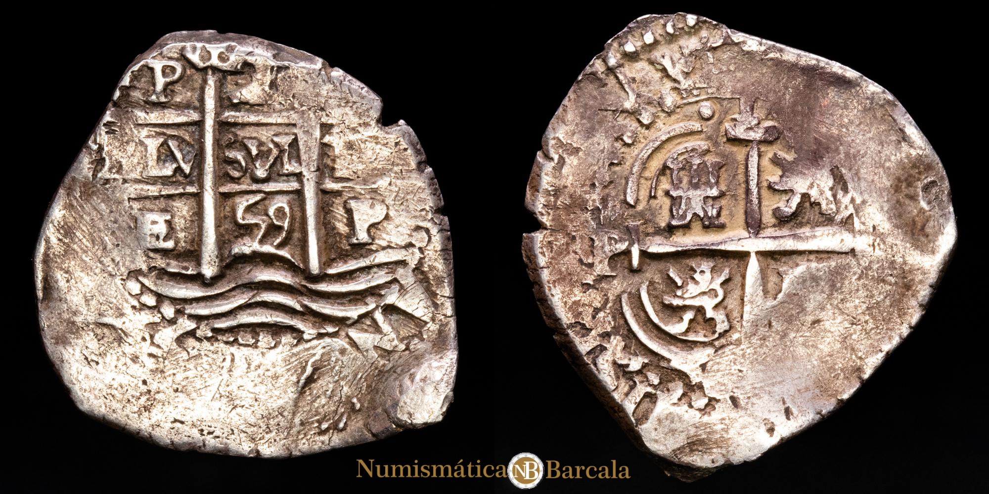 Numismática Barcala > Productos > Monarquia Española > Austrias > 1621-1665 Felipe IV > Felipe IV. 2 Reales. (4,50 g.). Potosí. 1659. Ensayador E. EBC-. Rara.