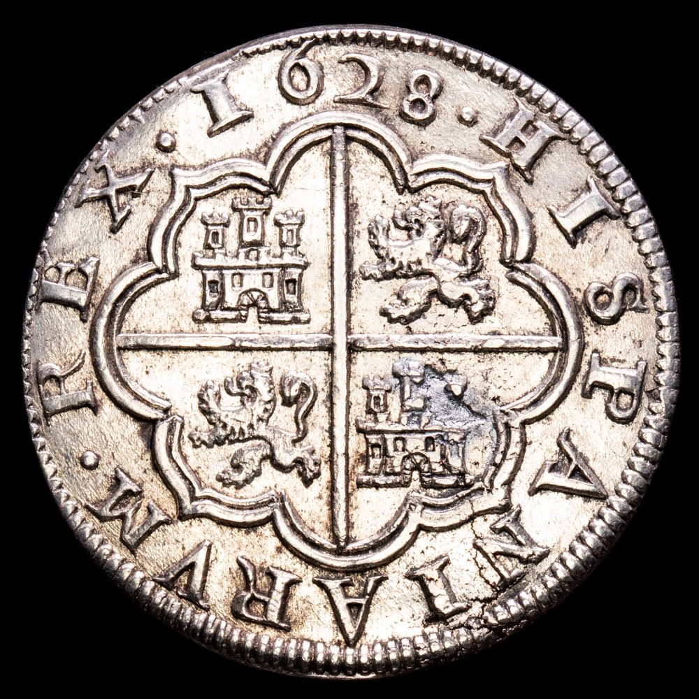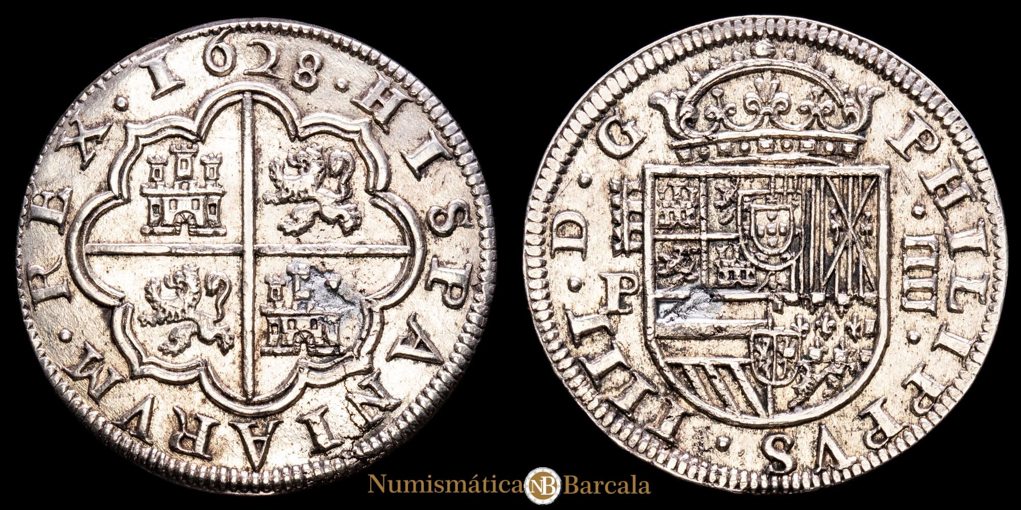 Numismática Barcala > Productos > Monarquia Española > Austrias > 1621-1665 Felipe IV > Felipe IV. 4 Reales (13,44 g.). Segovia. 1628. Ensayador P. AC-1165. MBC+. Hoja reparada. Rara.