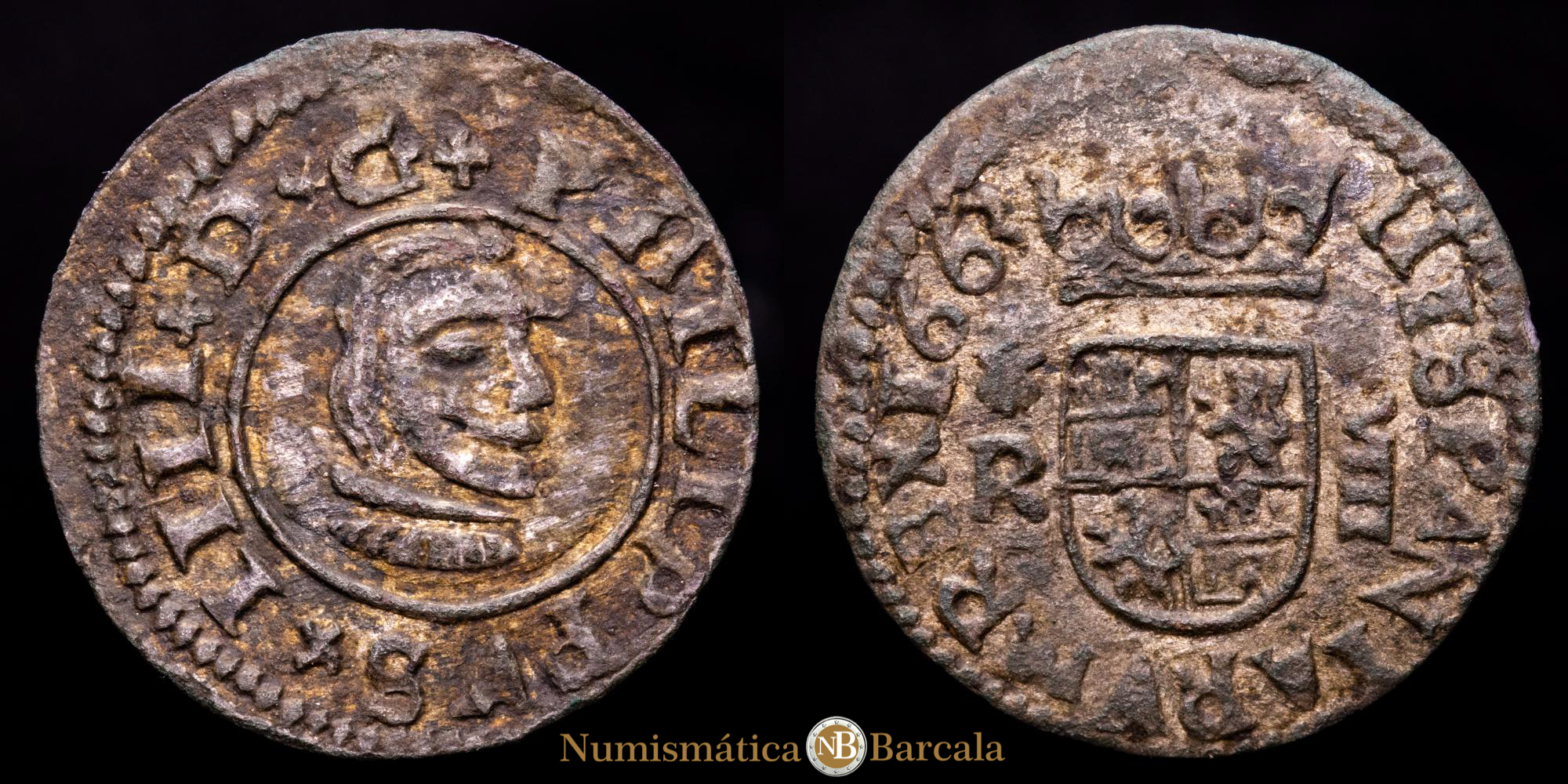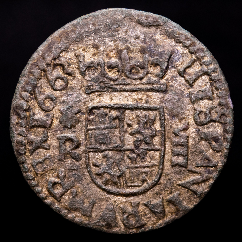Numismática Barcala > Productos > Monarquia Española > Austrias > 1621-1665 Felipe IV > Felipe IV. 8 Maravedís. (1,57 g.). Coruña. 1663. AC-319. MBC+.