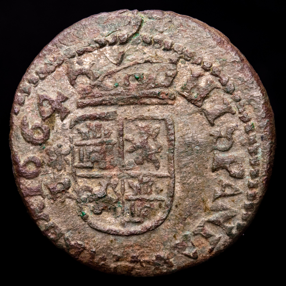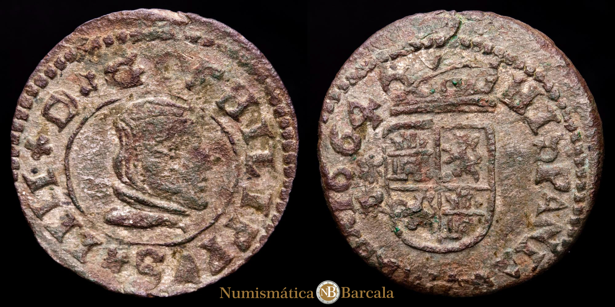 Felipe IV. 8 Maravedís. (3,11 g.). Coruña. 1664. AC-321. MBC+. Rara. Sin indicación de valor