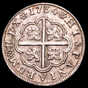 Felipe V. 2 Reales. (5,94 g.). Sevilla. 1734. Ensayador P·A. CAL-1434. EBC. Escasa así, buen ejemplar