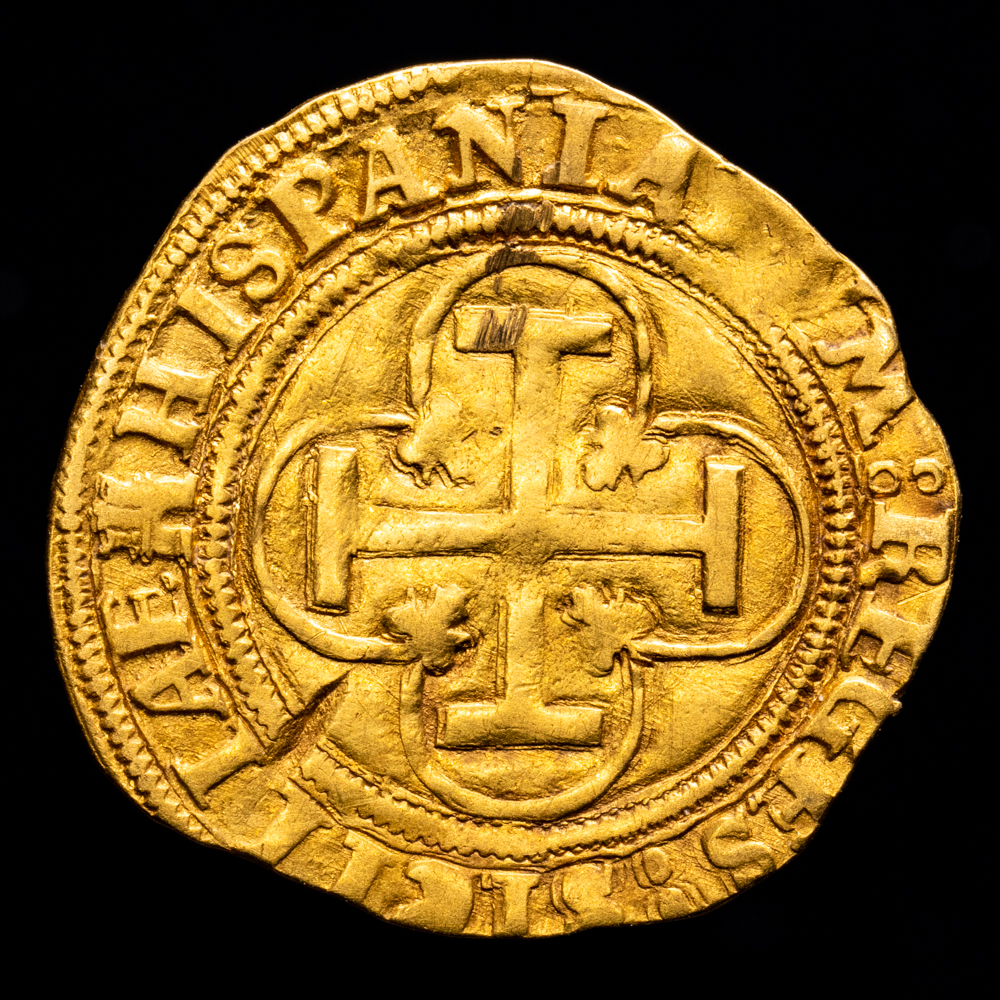 Juana y Carlos (1504-1555). 1 escudo. ND. Sevilla. (Cal-196). (Tauler-24). Anv.: IOANNA · ET · KAROLVS. Rev.: HISPANIARVM REGES :: SICILIAE. Au. 3,29 g.
