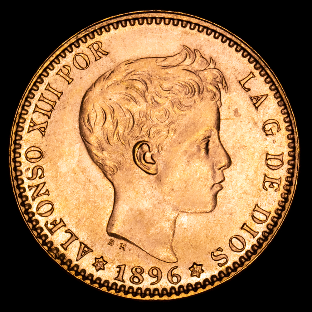 Alfonso XIII. 20 Pesetas. (6,48 g.). Madrid. 1896 *19-62*. Ensayador MP·M. AC-173. XF+.