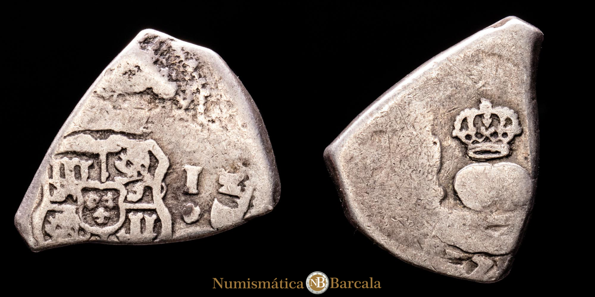 Gibraltar – Felipe V. 1/2 Bit. (1,33 g.). México. 1746. Ensayador M. VG 20. Rara. T-1 Heart cut on 1/2 Real