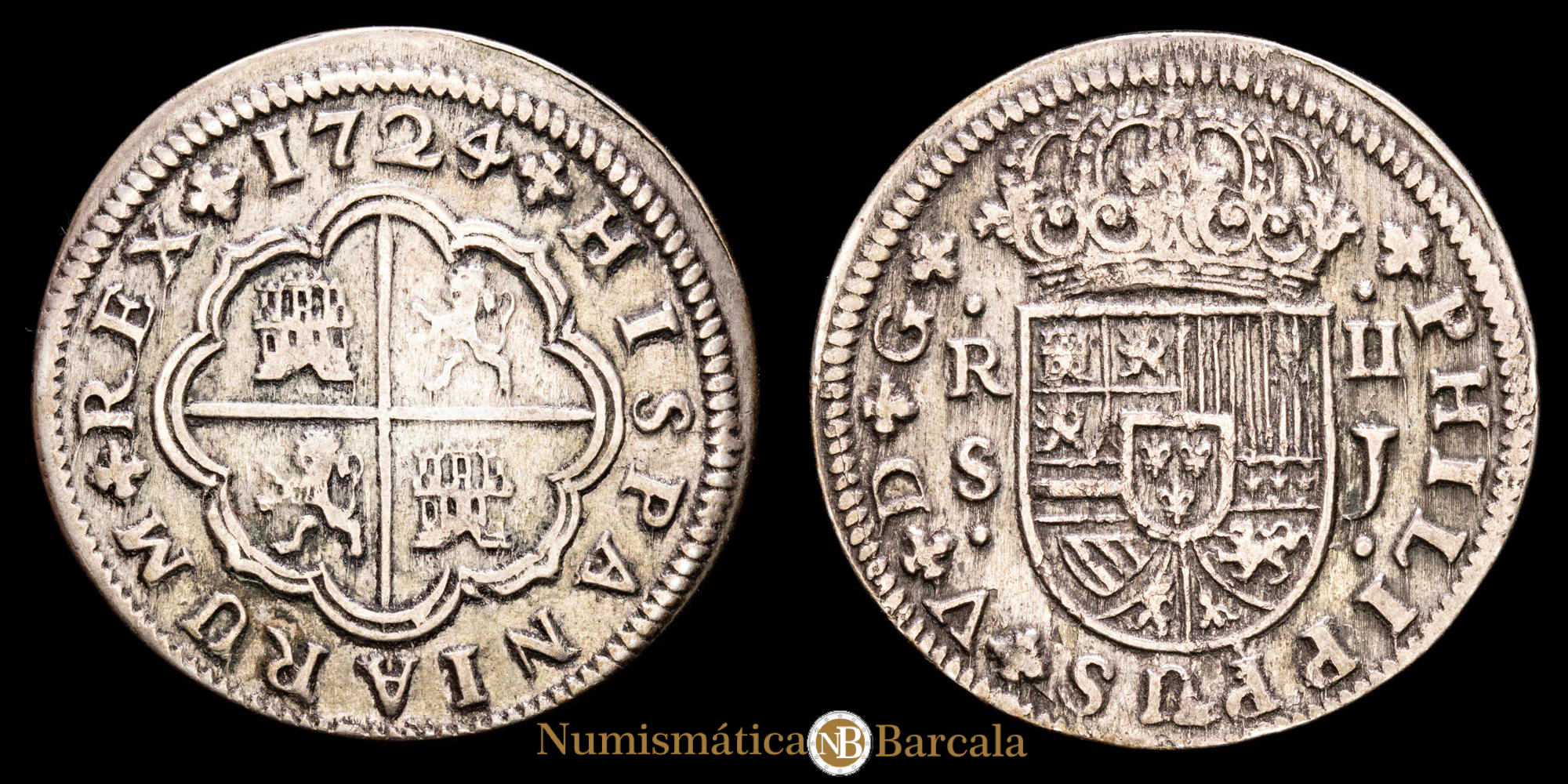 Felipe V. 2 Reales. 1724. Sevilla. Ensayador J. CAY-8760. MBC+