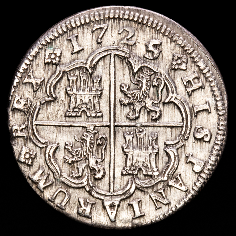 Felipe V. 2 Reales. (5,21g.). Madrid. 1725/4. CAL-779. UNC. Muy bella.