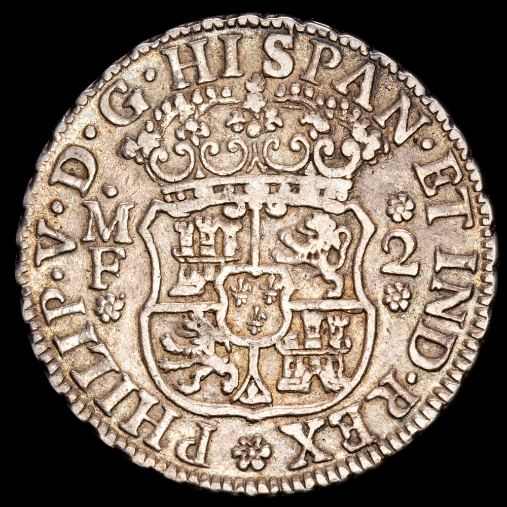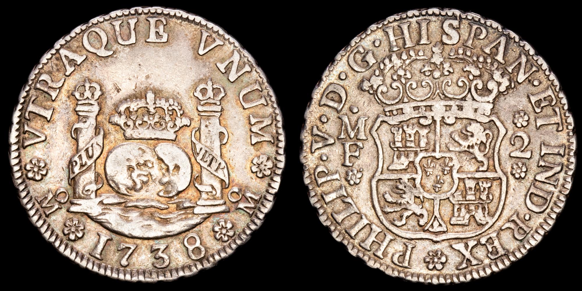 Numismática Barcala > Productos > Monarquia Española > Borbones > 1700-1746 Felipe V > Felipe V. 2 Reales ( 6,62 g.). 1738. México. Ensayador M.F. CA- 820. VF+.