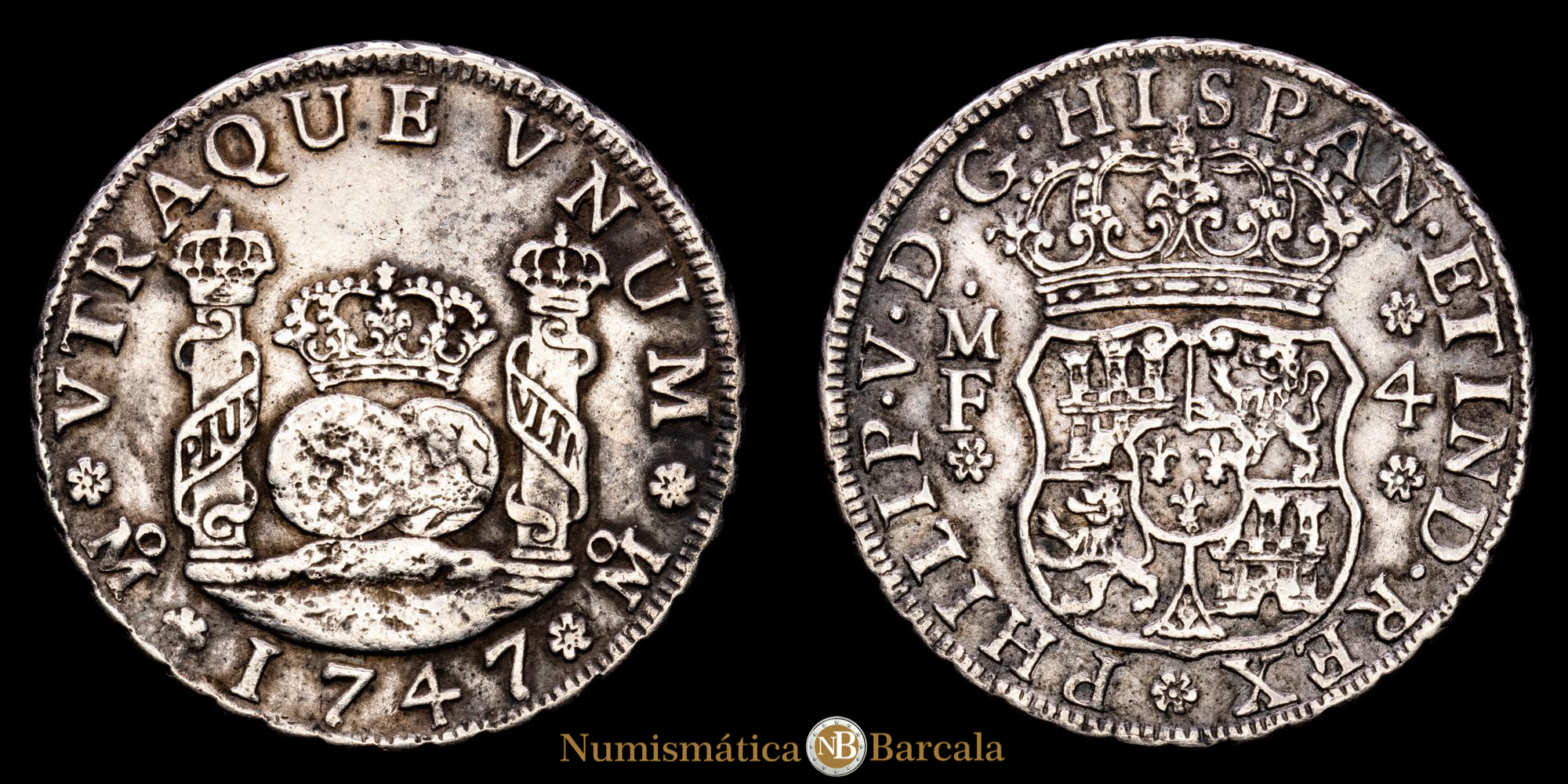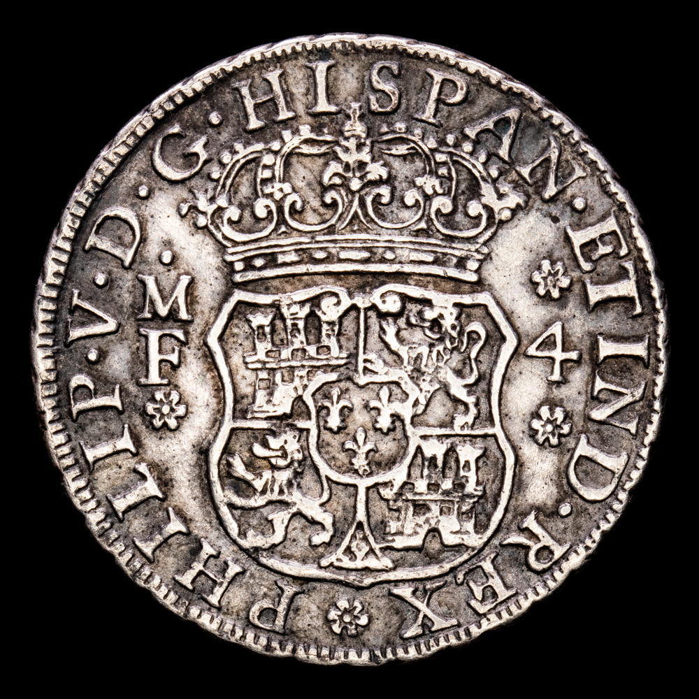 Felipe V. 4 Reales. (13,64 g.). México. 1747. Ensayador M·F. Aureo y Calico-1154. MBC+. Rara.