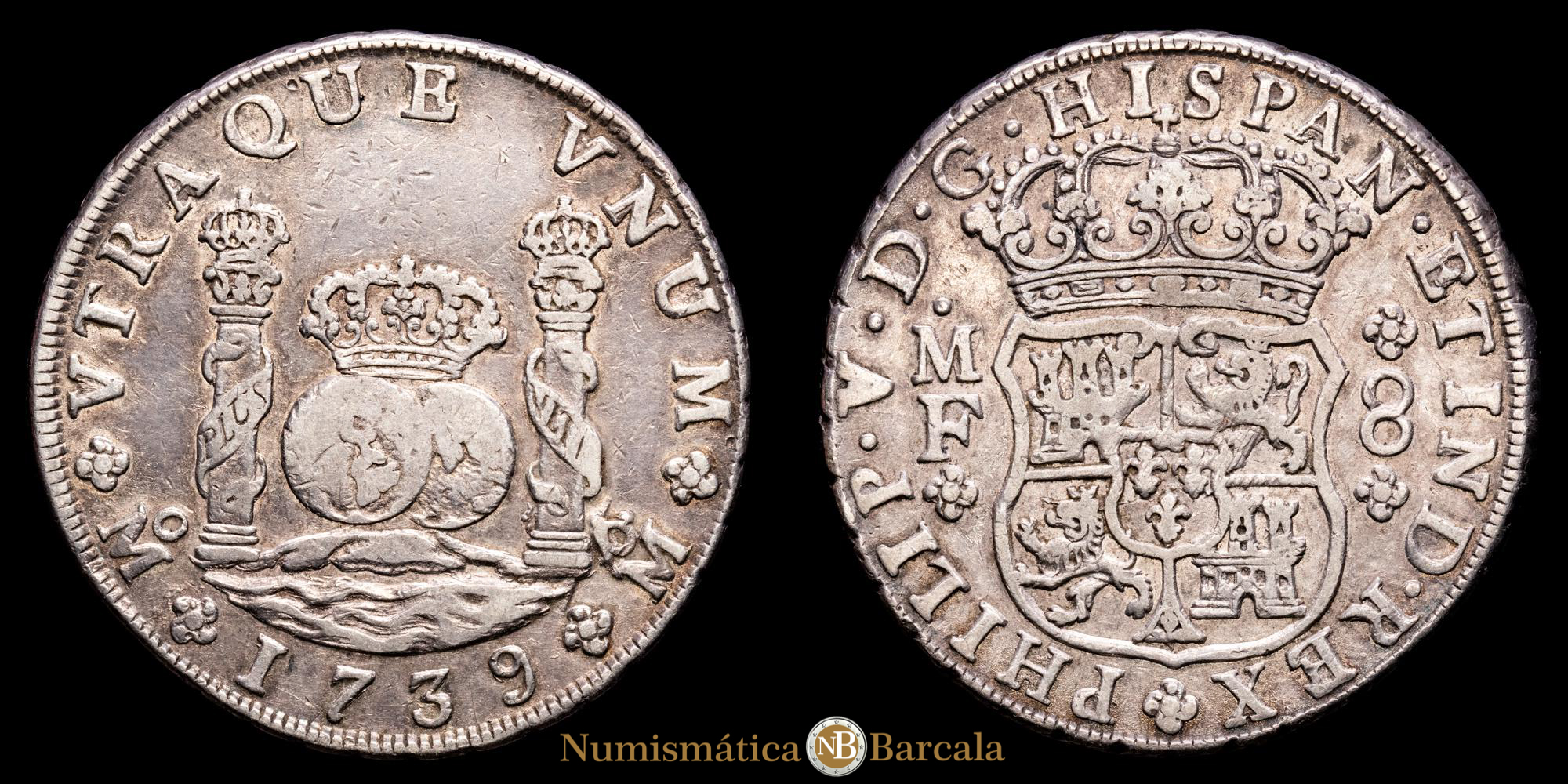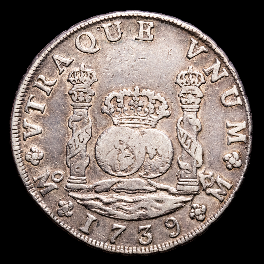 Numismática Barcala > Productos > Monarquia Española > Borbones > 1700-1746 Felipe V > Felipe V. 8 Reales. (26,84 g.). México. 1739. Ensayador M·F. Aureo y Calicó-1453. MBC+. Restos de brillo original. Tono