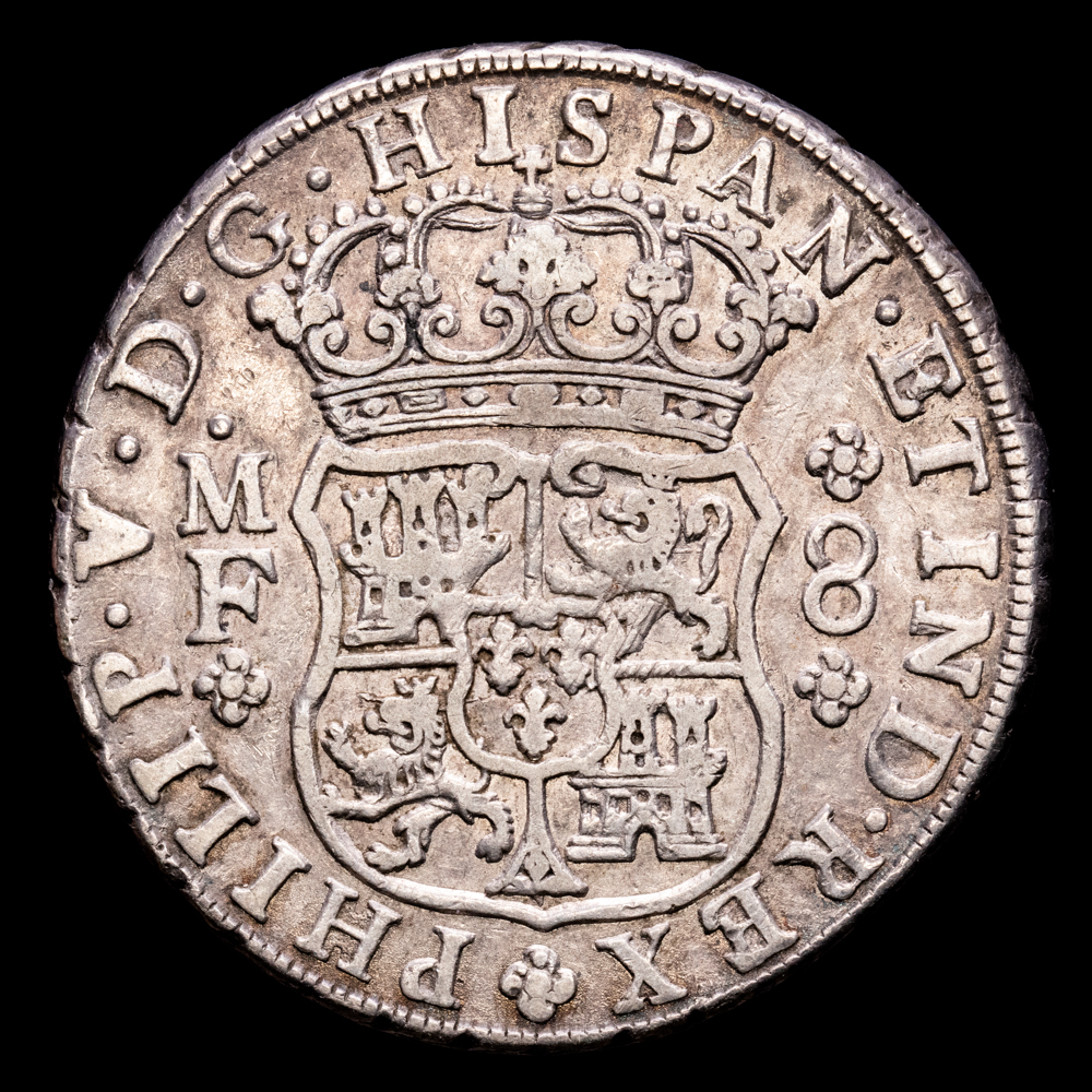 Felipe V. 8 Reales (26,89 g.). México. 1742. Ensayador M·F. Aureo y Calicó – 1460. EBC/EBC-. Buen ejemplar, atractiva pátina.