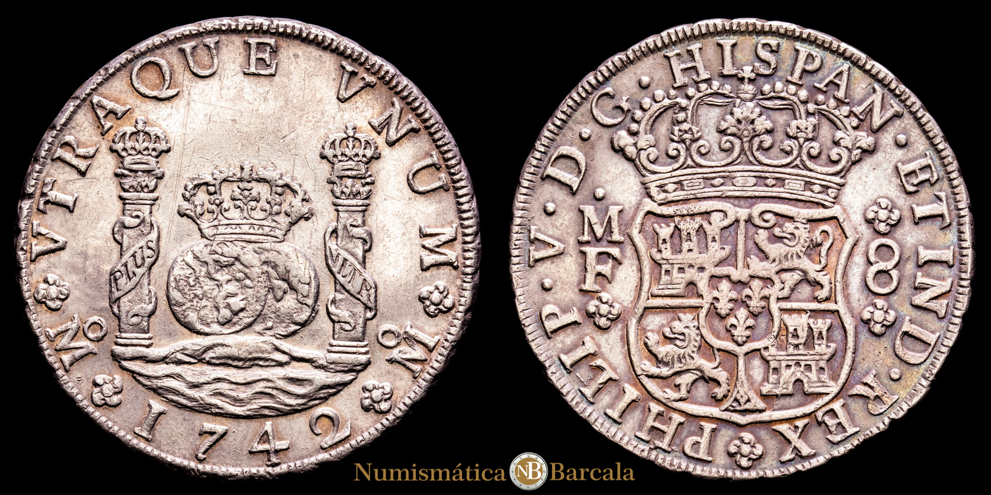 Numismática Barcala > Productos > Monarquia Española > Borbones > 1700-1746 Felipe V > Felipe V. 8 Reales (26,89 g.). México. 1742. Ensayador M·F. Aureo y Calicó – 1460. EBC/EBC-. Buen ejemplar, atractiva pátina.