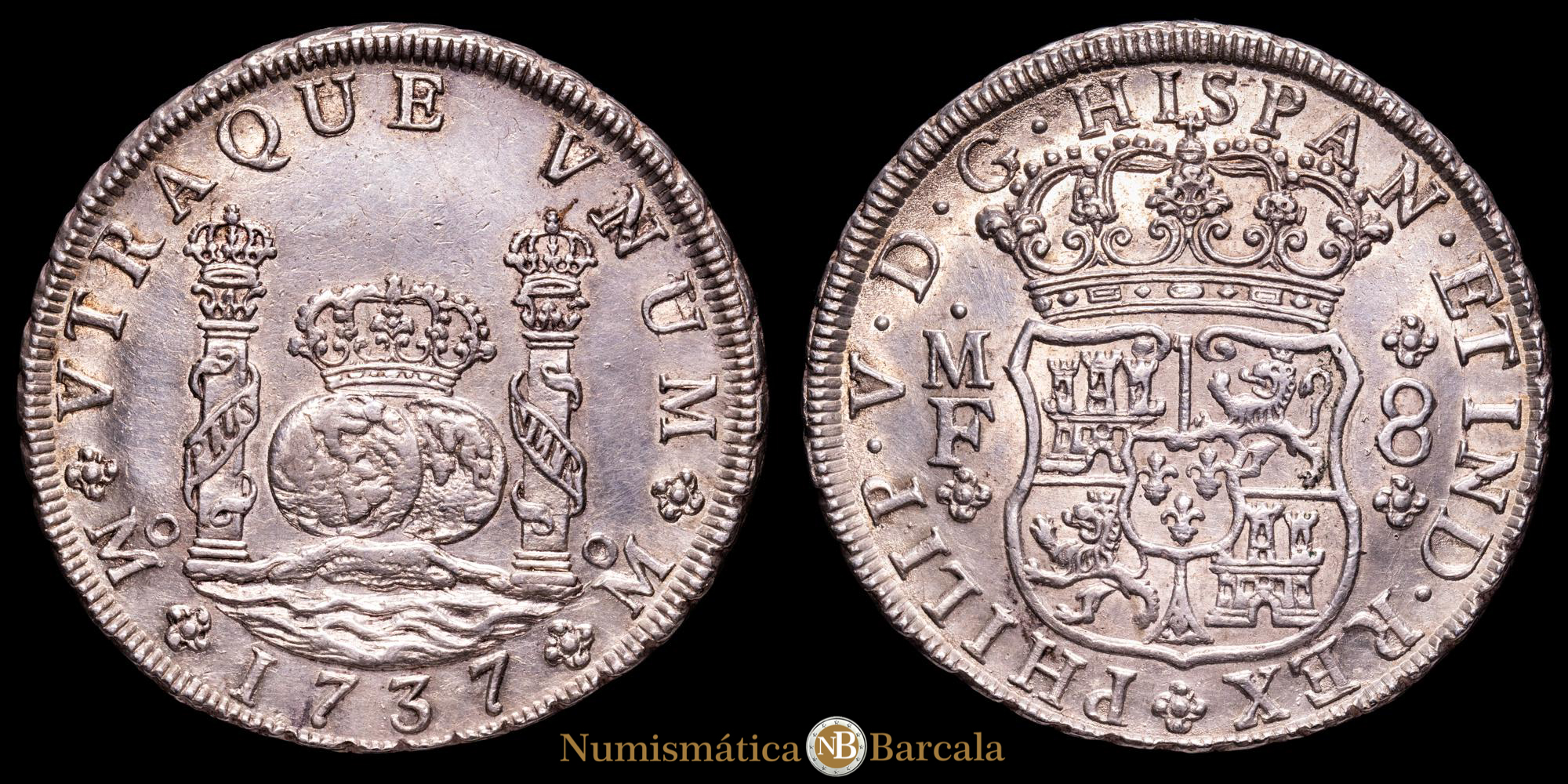 Numismática Barcala > Productos > Monarquia Española > Borbones > 1700-1746 Felipe V > Felipe V. 8 Reales. (26,93 g.). México. 1737. Ensayador M·F. AC-1446. EBC+.Bella