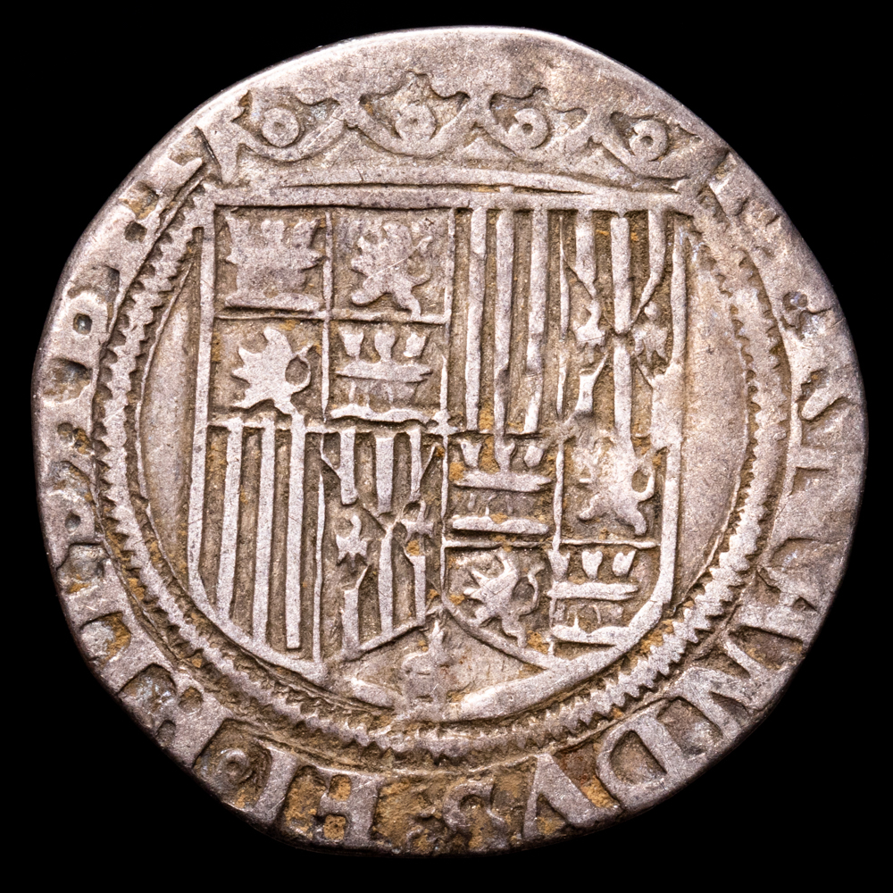 Numismática Barcala > Productos > Monarquia Española > Reyes católicos > Fernando e Isabel. 1 Real. (2,44 g.). Sevilla. (1474-1504). AC-(408). MBC+. AC- no cita esta posición (S)