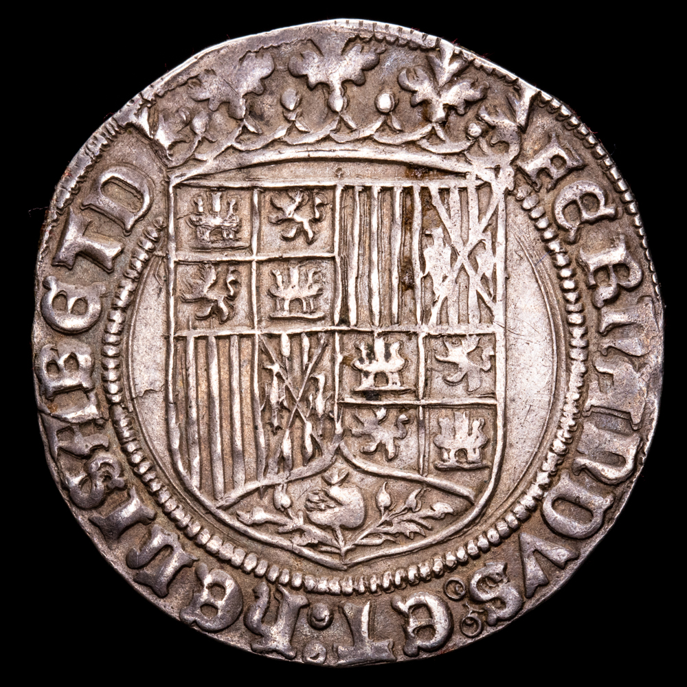 Reyes Católicos. 1 Real. (3,02 g.). Toledo. Ensayador “Cruz formada por 5 puntos”. Aureo y Calicó-465. MBC. Escasa